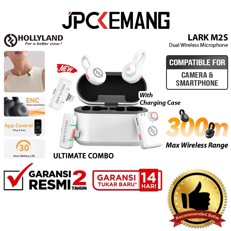 Hollyland LARK M2S Combo / Mini Combo / USB Type-C Mic Dual Wireless Microphone for Cameras & Smartphone Garansi Resmi