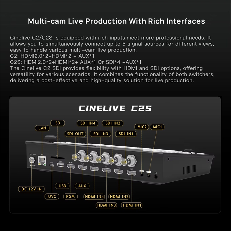 CineTreak Cinelive C2S 5-Channel Multi Camera Video Mixer Live Streaming Switcher Cinelive C2 S Garansi Resmi