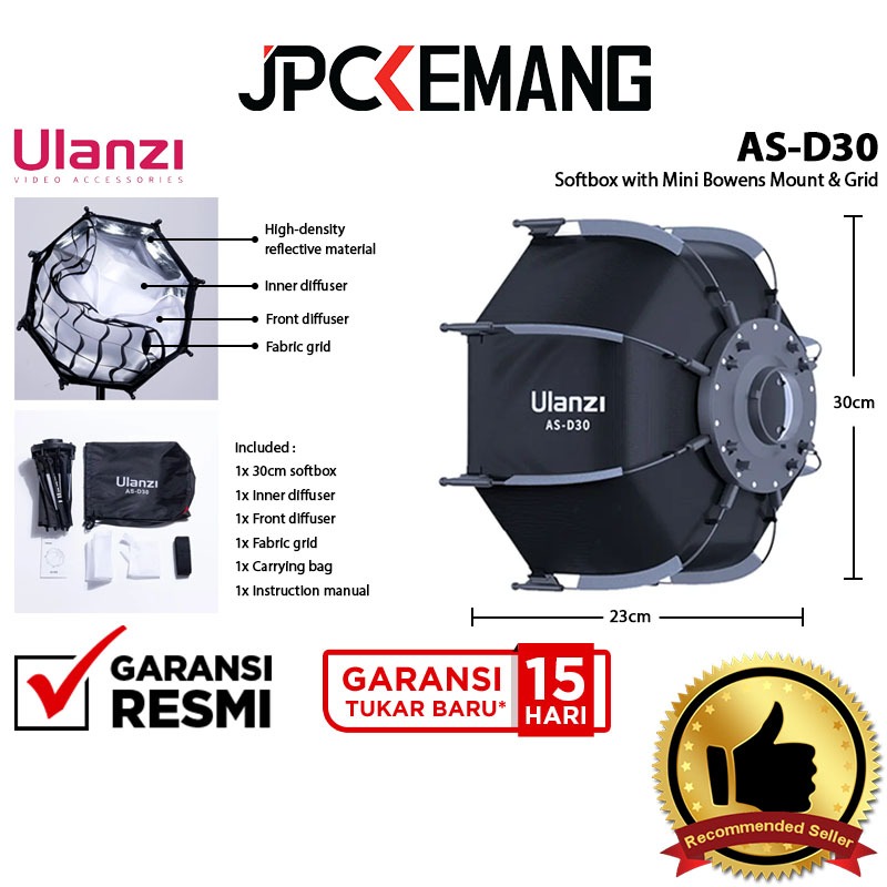 Ulanzi AS-D30 Octagonal Softbox 30cm with Mini Bowens Mount & Grid Ulanzi ASD30 Soft Box Octa 30 cm Garansi Resmi