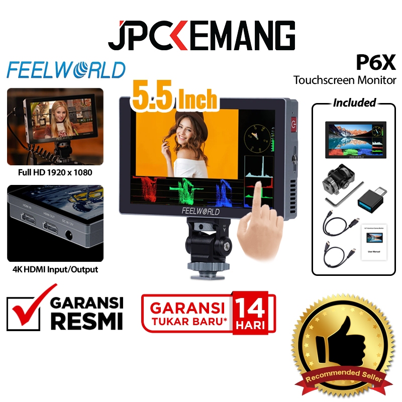 Feelworld P6X 5.5" Inch 4K HDMI Touchscreen Field Monitor External Camera Feelworld P6 X Garansi Resmi