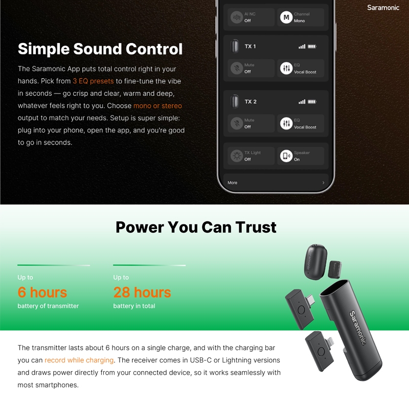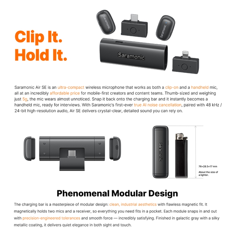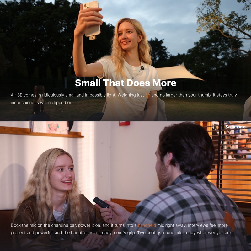 SARAMONIC AIR SE AI-Powered Clip-On & Handheld Dual Wireless Microphone for Smartphone HP Mic Wireless Garansi Resmi