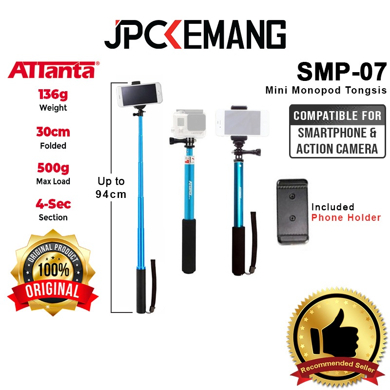 ATTANTA SMP-07 Selfie Stick Mini Monopod for Action Camera & Smartphone Tongsis HP Attanta SMP07 Original