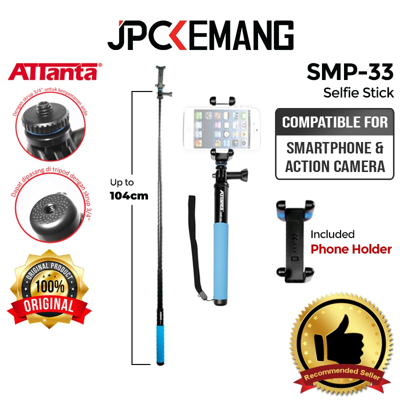 ATTANTA SMP-33 Selfie Stick Mini Monopod for Action Camera & Smartphone Tongsis HP Tongkat Selfie Attanta SMP33 Original