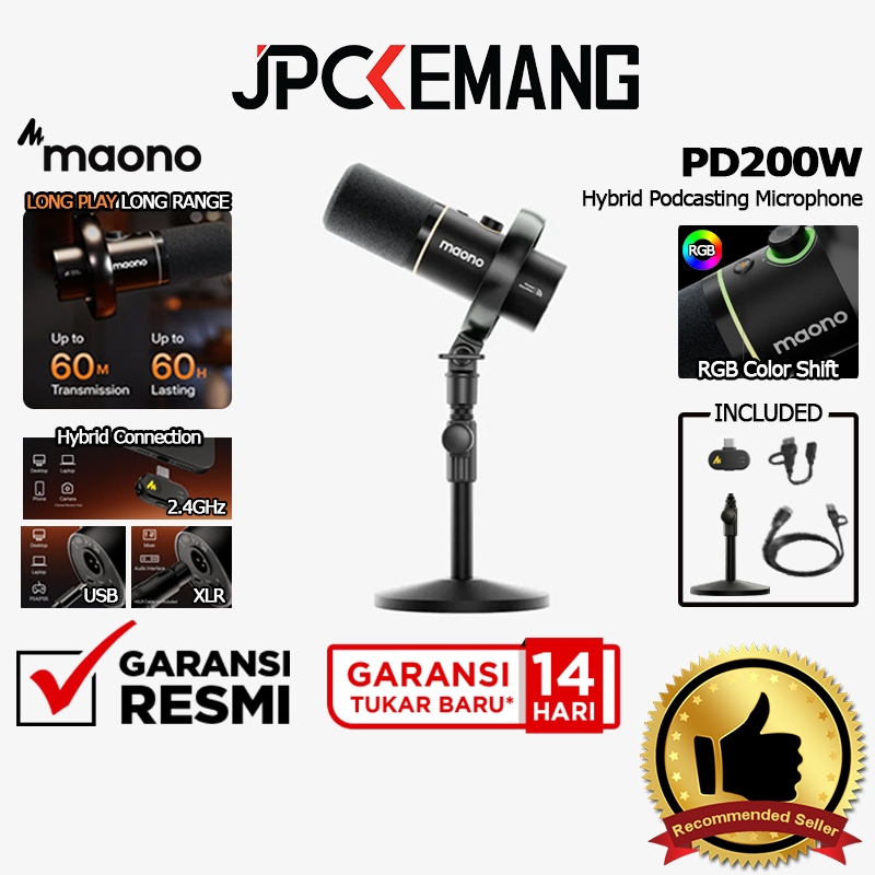 MAONO PD200W Hybrid Wireless Dynamic Microphone for Podcast Maono PD200 W Mic Studio Garansi Resmi