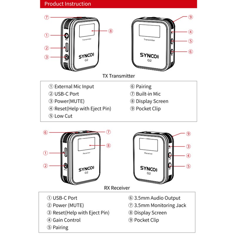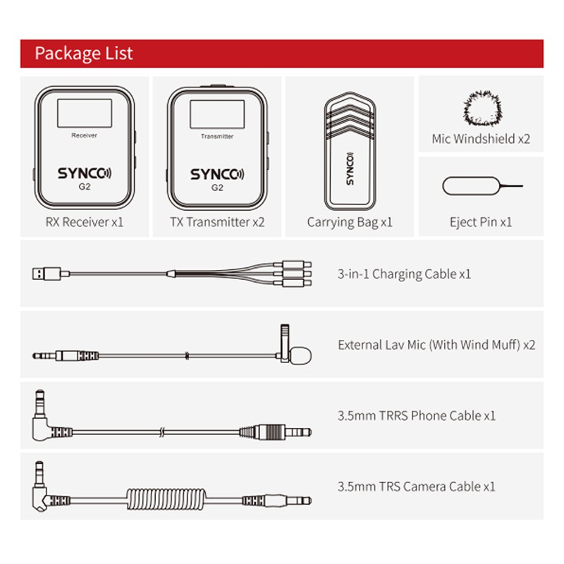 SYNCO G2 A2 Dual Wireless Microphone for Camera & HP TX+TX+RX Garansi Resmi