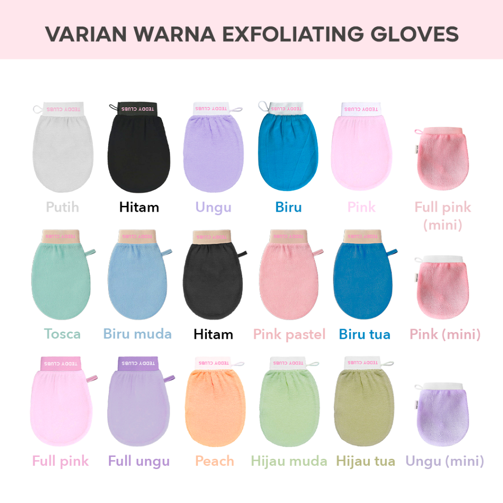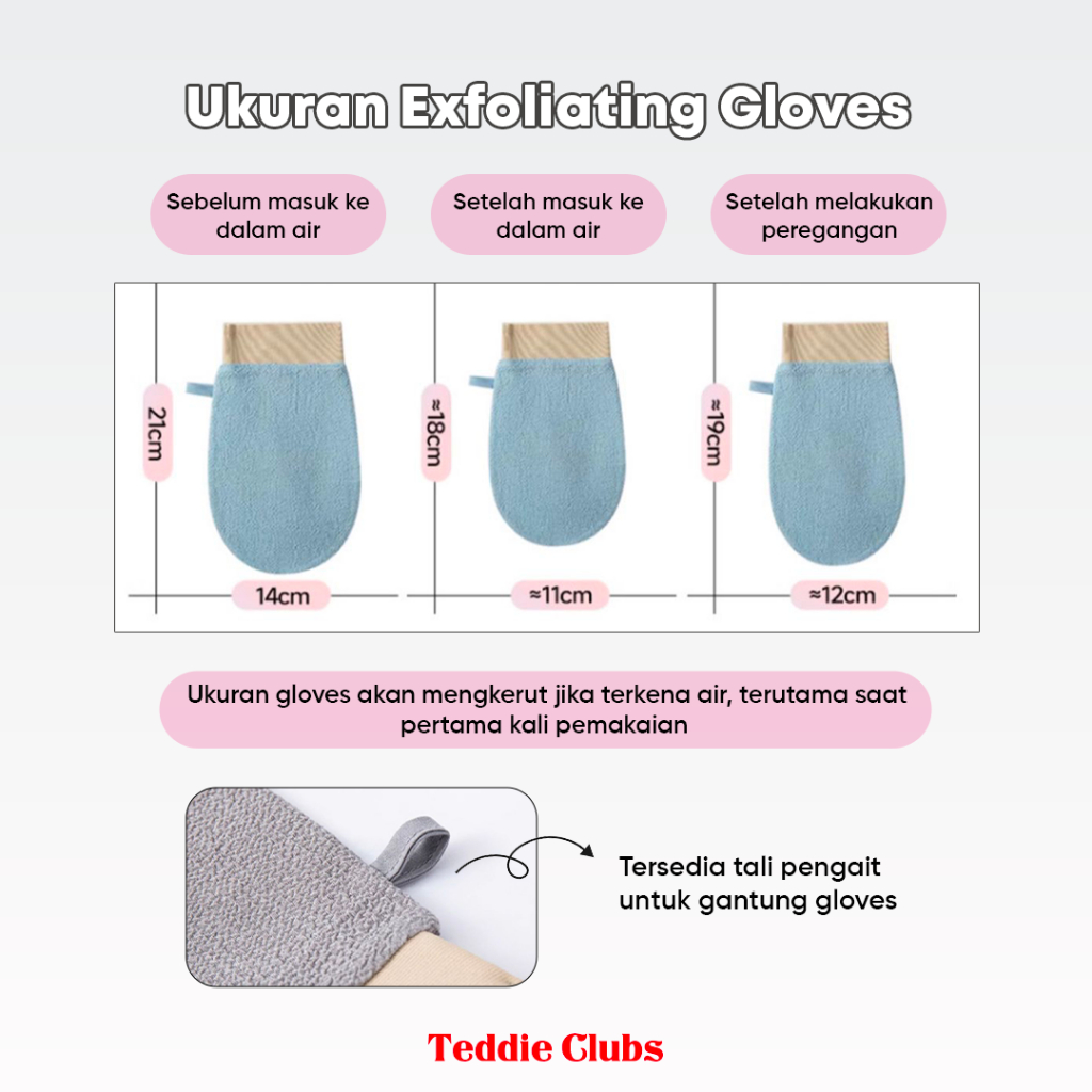 [READY STOCK] Teddy Clubs Body Exfoliating Gloves | New Color Pastel | Sarung Eksfoliasi Tubuh | Sarung Pengangkat Daki Tubuh | Sarung Mandi | Bath Gloves Exfoliating | Alat Scrub Badan