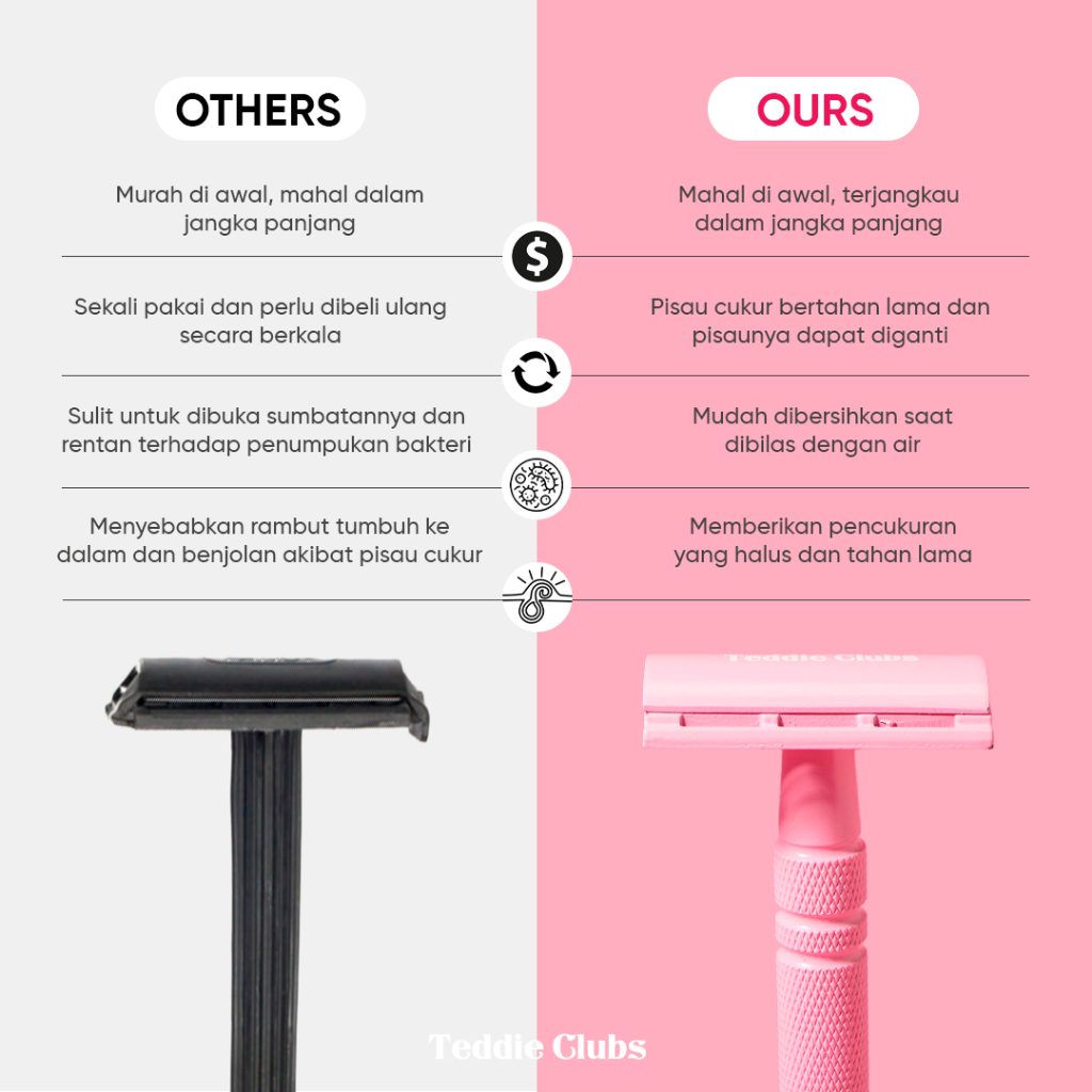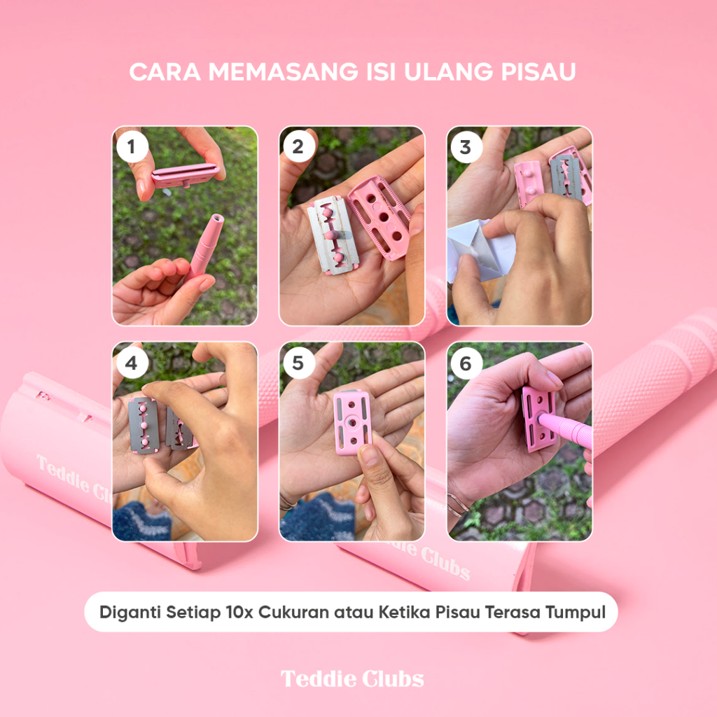 Teddy Clubs | Alat Cukur Wanita Single Blade Razor (Include 10 pcs Refill Silet) | Close Shave Safety Razor dengan Refil Cukur Isi Ulang | Pisau Cukur Bulu Wanita | Women Razor Single Blade | Cukuran