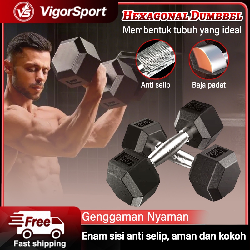 10 Kg Hex Rubber Dumbbell Dumbbell set /2.5kg 5KG 7.5KG 10KG 12.5KG 15KG peralatan fitness hexagonal dumbell dengan perlindungan lingkungan