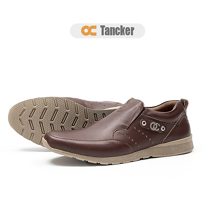 Sepatu Sneaker OC Tank Pria Kulit Asli Odon Cibaduyut Pantofel Casual Hitam Coklat New Kekinian