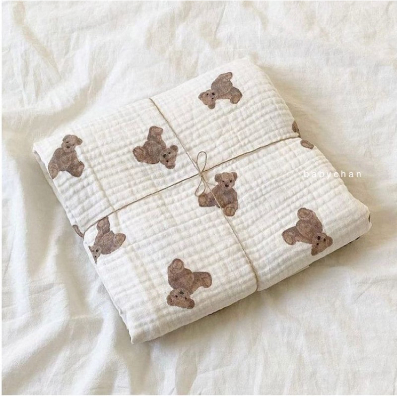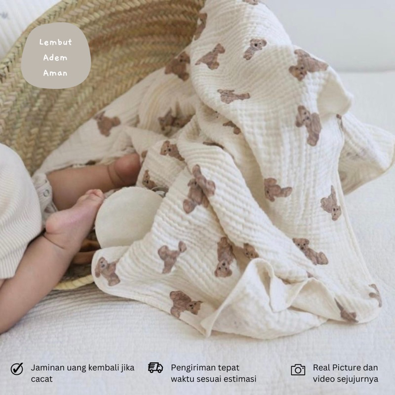 BABYCHAN - BEAR BLANKET - Selimut bayi Muslin swaddle bear Kain bedong bayi - Selimut bayi beruang baby blanket