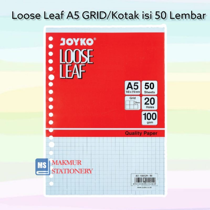 Loose Leaf / Kertas Binder Grid (Kotak) A5 50 Lembar Joyko