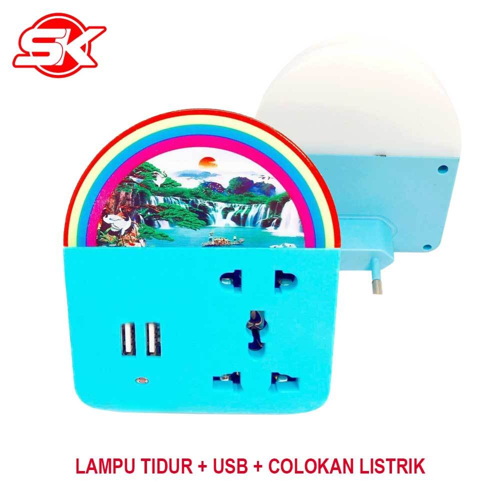 LAMPU TIDUR COLOKAN LISTRIK 3 LUBANG DAN SENSOR CAHAYA LED DUAL USB CHARGING