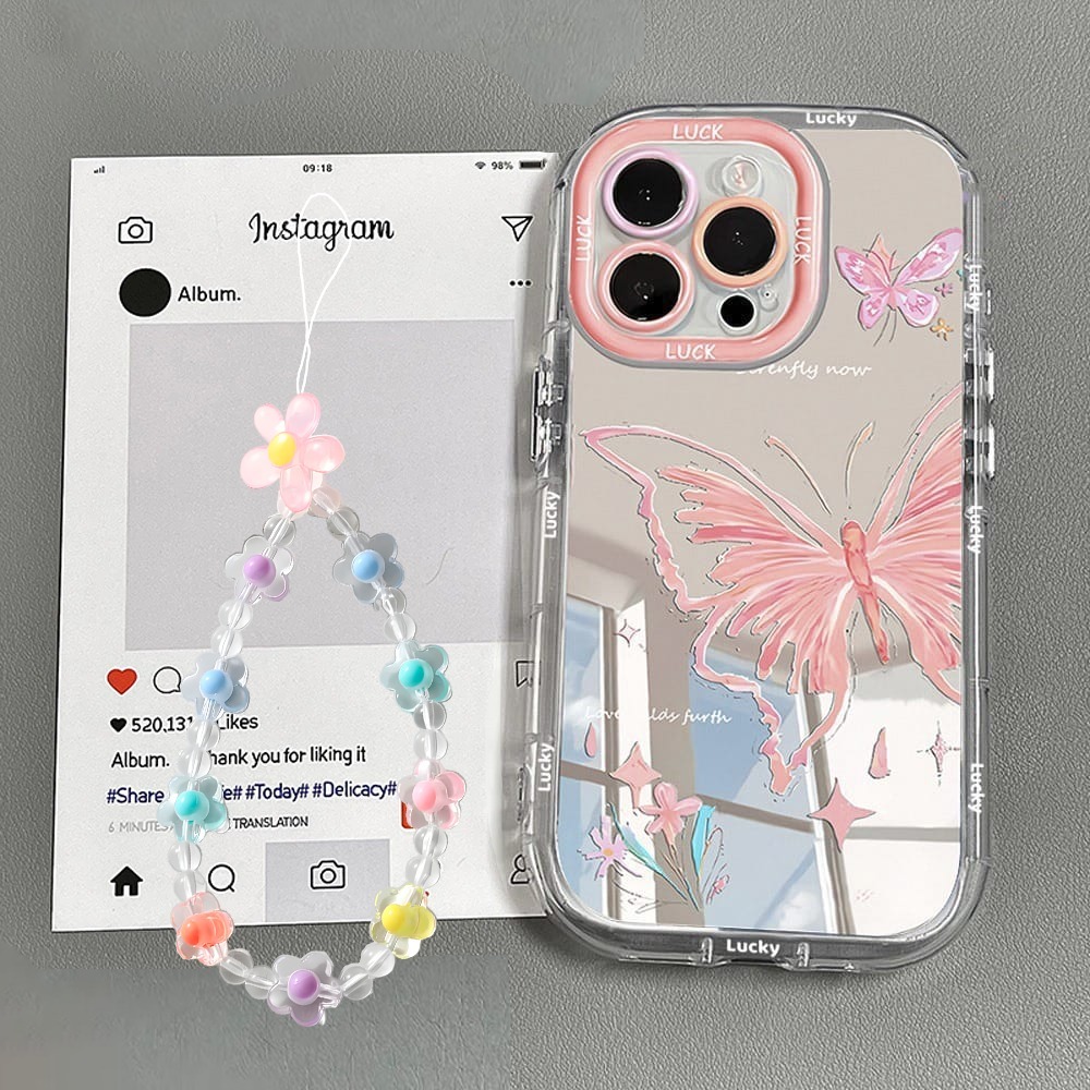 Case for Realme C1 C2 5 5I 11 14 14T 15 C11 C20 NARZO 50A 50I PRIME C21Y C25 C12 C30 C31 C33 C35 C53 C51 C55 C61 C63 C65 C67 NOTE 50 60 70 C71 C75 C85 PRO P3 Pink Butterfly Mirror Aesthetic With Cutie Charm Flower Softcase Acrylic Casing Hp GL071 BC10380
