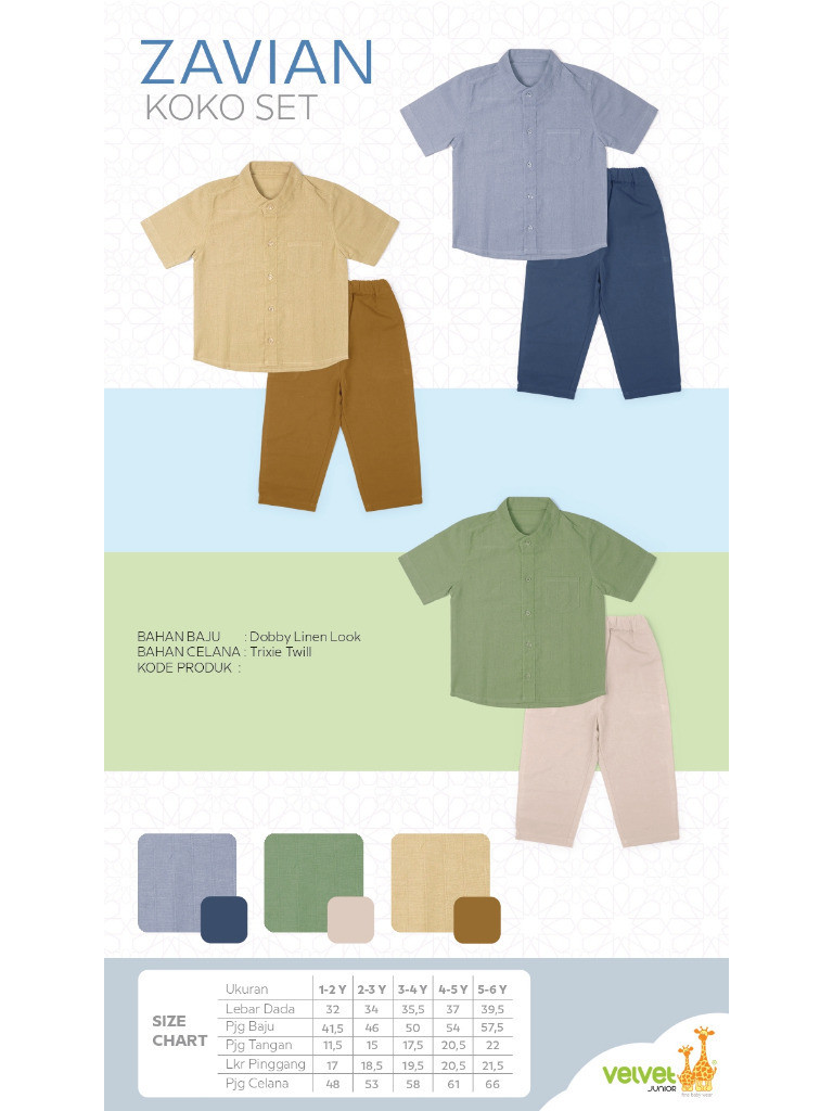 Velvet Junior Rayya Collection Setelan Baju Koko Zavian - Akhkaz Pakaian Muslim Anak Laki