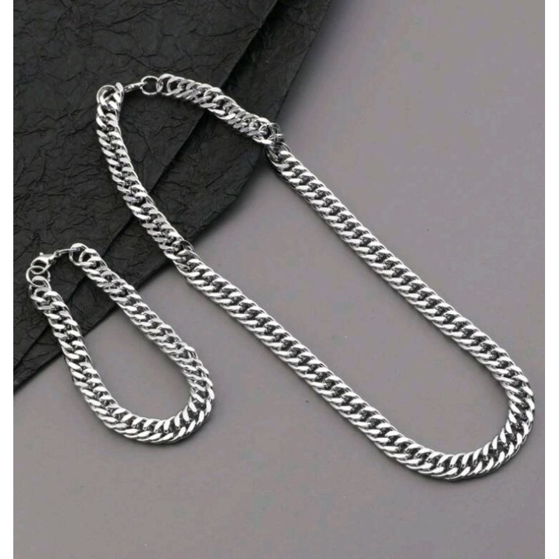 SATU PAKET/KALUNG PLUS GELANG RANTAI TITANIUM SISIK KLIP / KALUNG GELANG TITANIUM PRIA