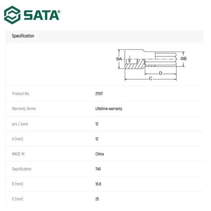 Bit Socket Bintang 1/4" Dr. Bit Socket, Torx T30 21106 SATA