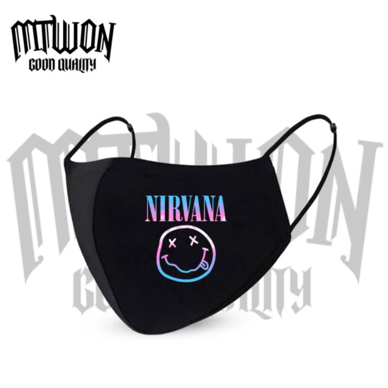 Masker band NIRVANA rock pop punk metal / kain 3 lapis/ply /black Earloop headloop / pria wanita dewasa / masker hitam/kn95/kf94/print/katun/logo/goodquality