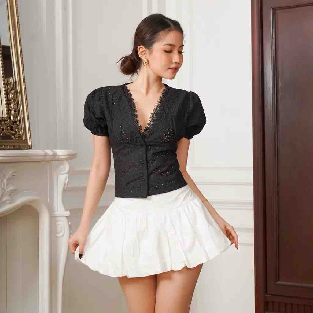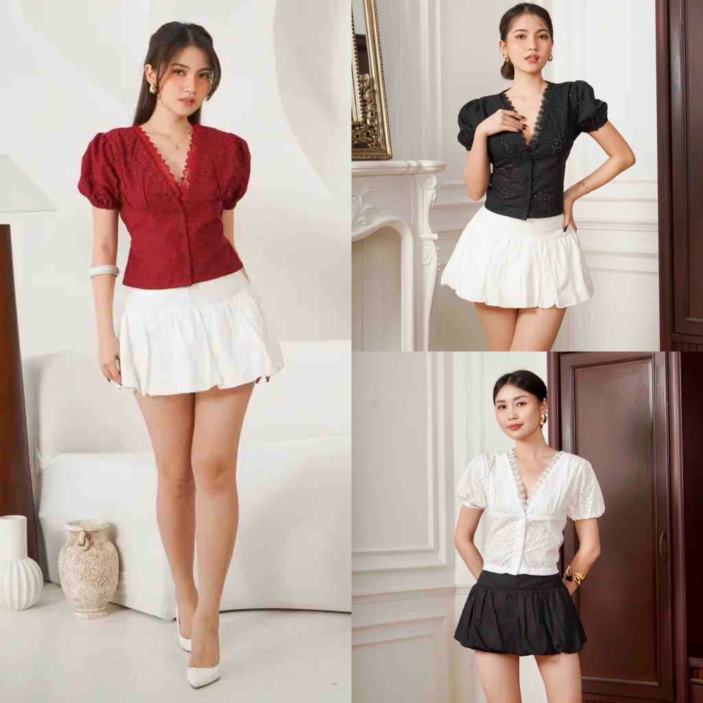 Stela Top | Atasan Blouse Wanita Renda V-neck