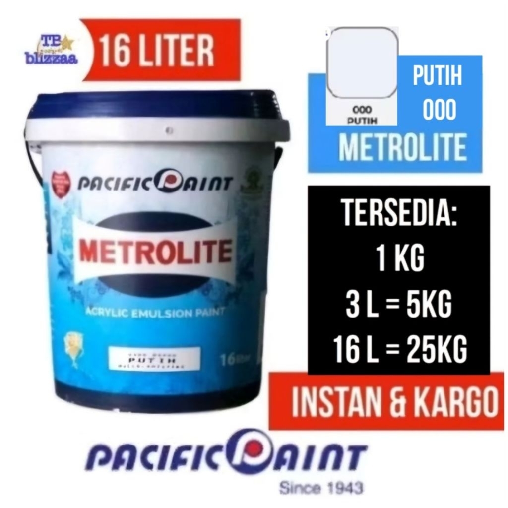 Metrolite 16 liter Pail 25 kg Metrolite 25kg Putih Pacific Paint Metrolite Romatex Putih Kebiruan