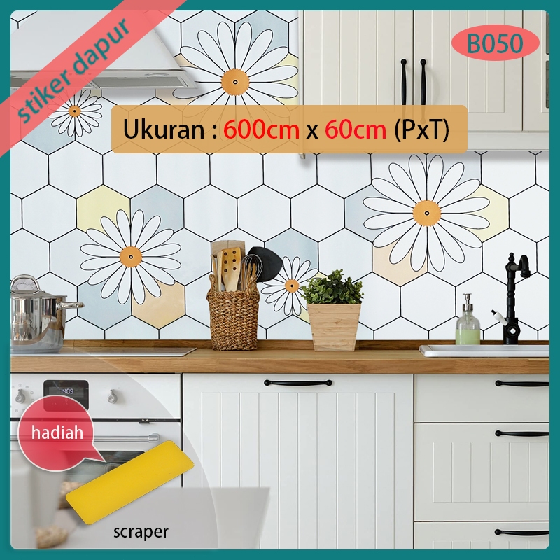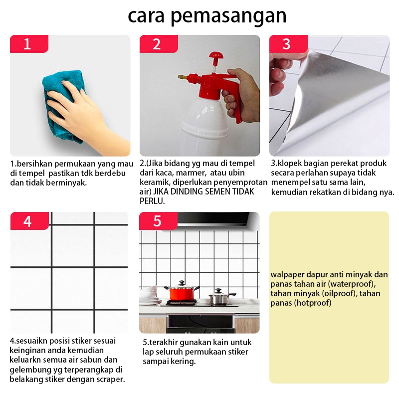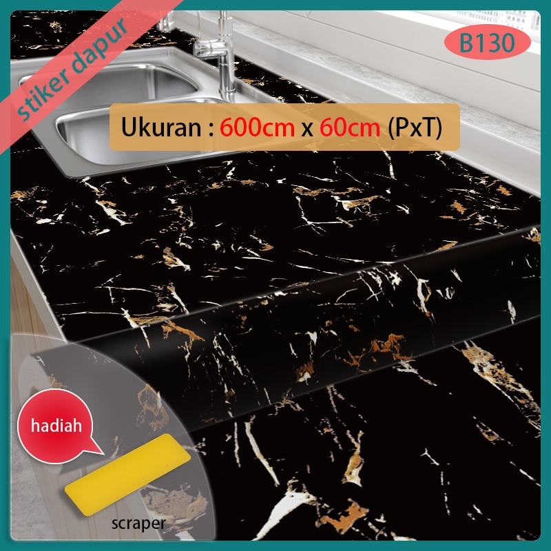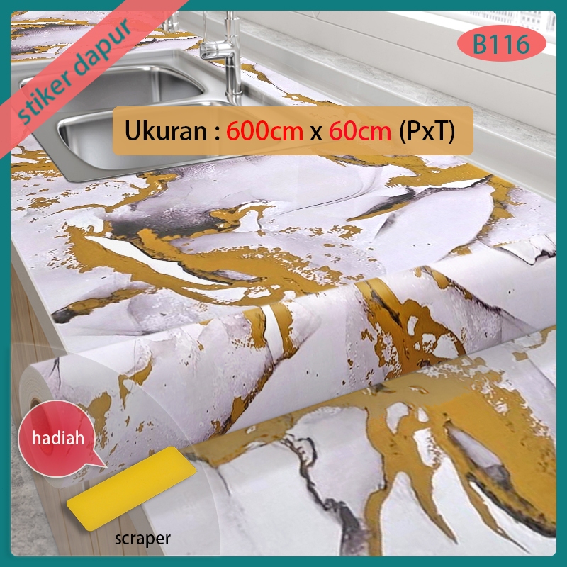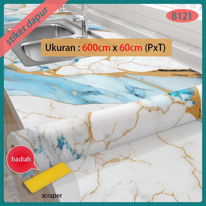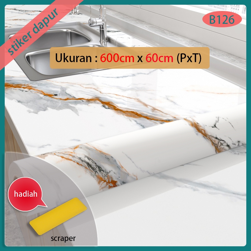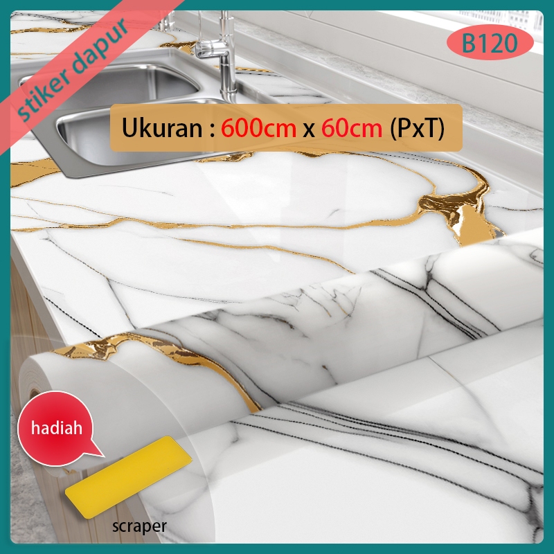 dinding dapur stiker bahan alumunium foil 6 meter X 60 cm motif marmer warna putih garis abu2