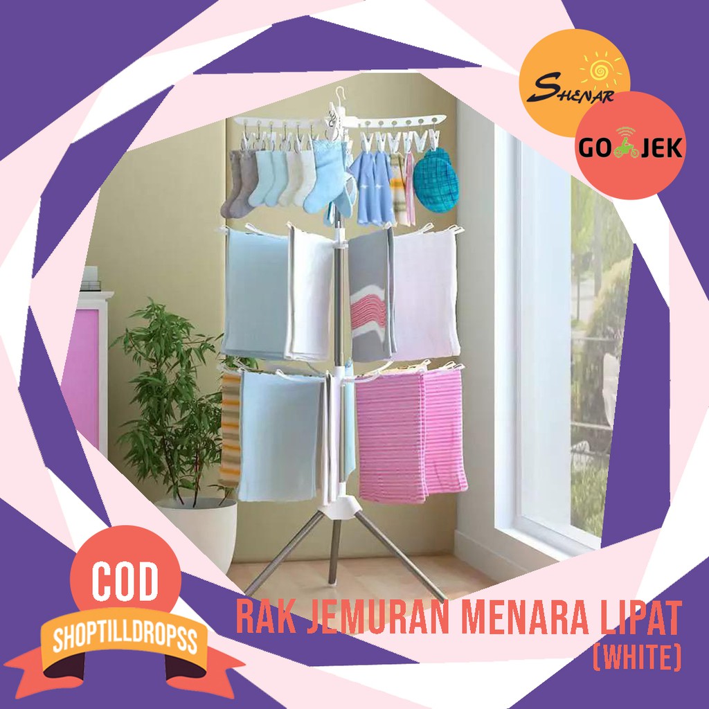 GRARTIS ONGKIR - 3 TINGKAT JEMURAN MENARA LIPAT JEMURAN BAJU MODEL MENARA SUSUN 32 GANTUNGAN 24 PENJEPIT, JEMURAN BAJU BAYI/CELANA DALAM / KAOS KAKI SERBAGUNA