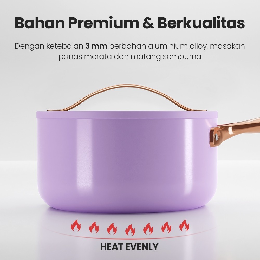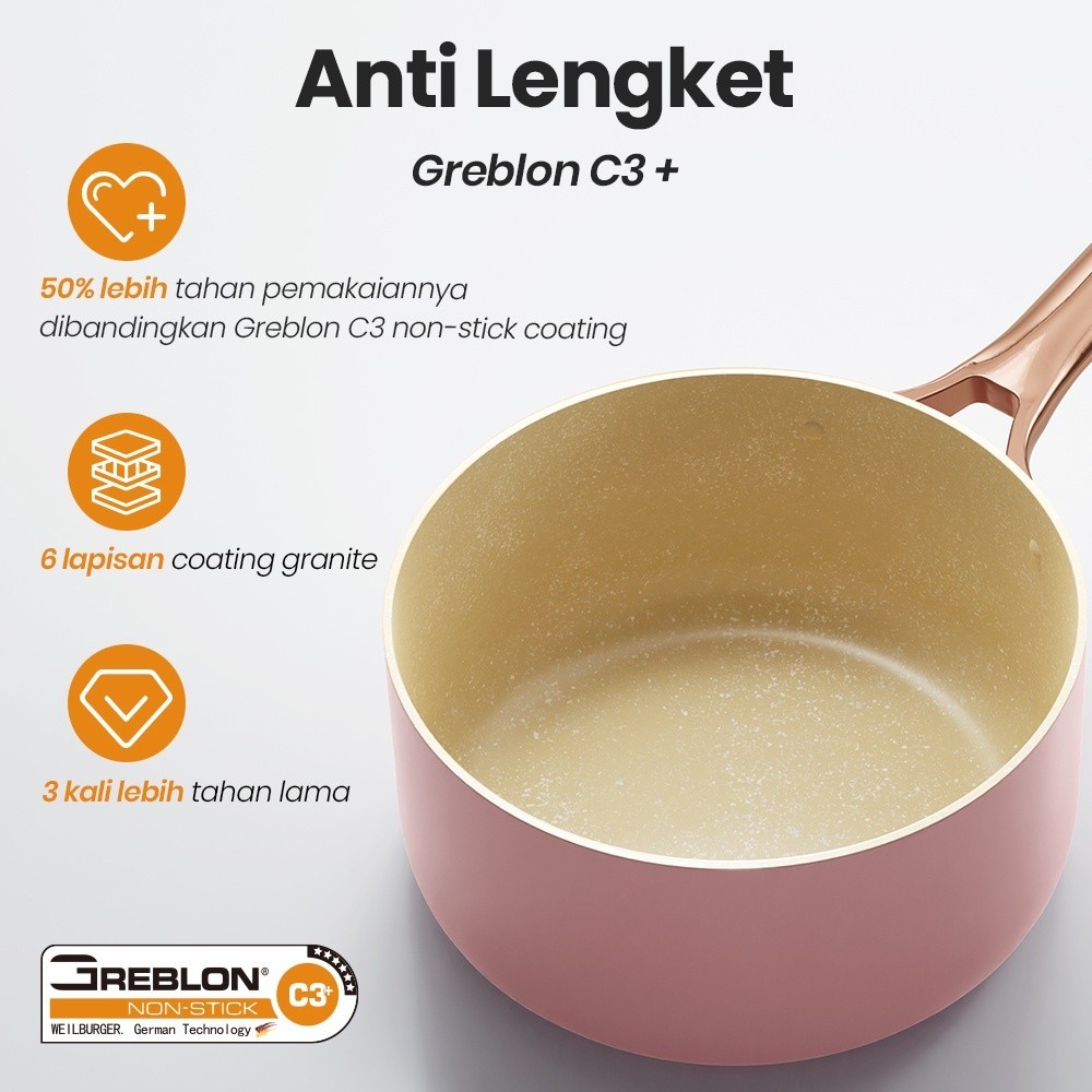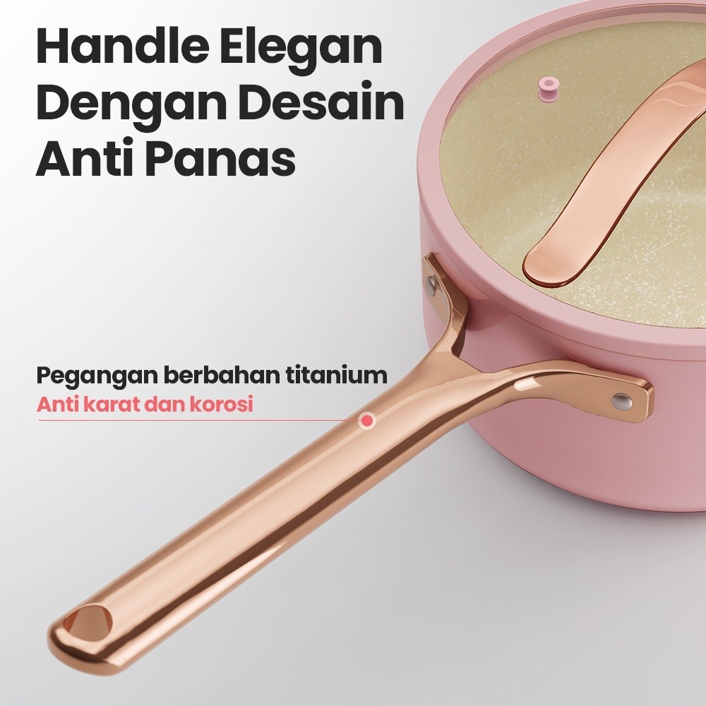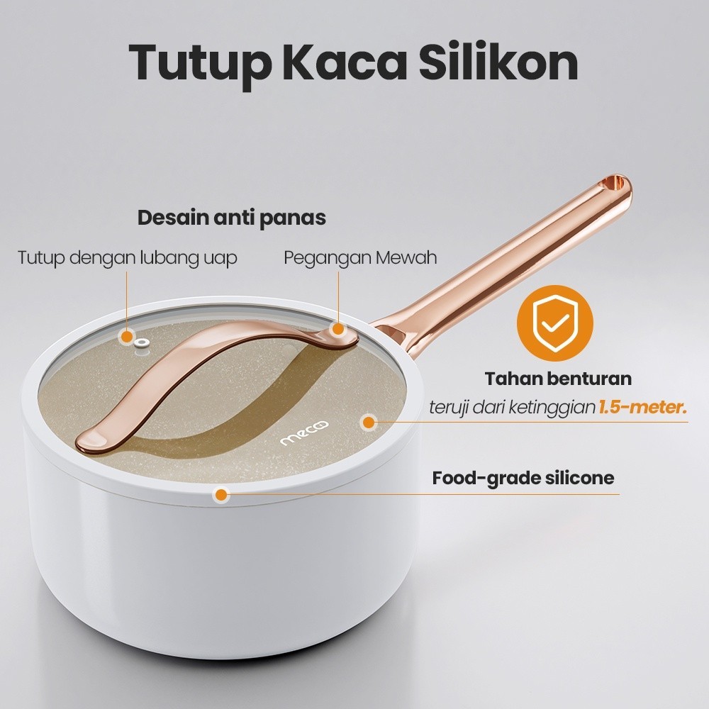 Mecoo Most Aesthetic Premium Non-Stick Sauce Pan With Lid 18cm SGS FDA LFGB Sertifikasi PFOA Free