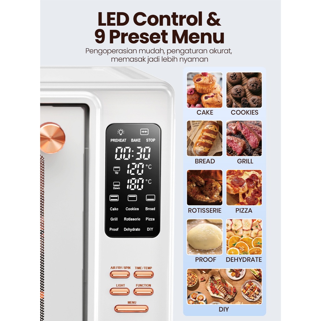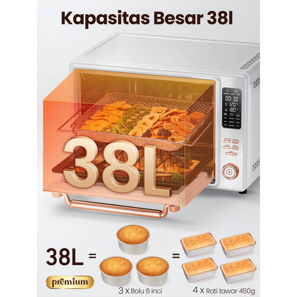 Mecoo Aesthetic Premium Digital Oven Listrik 980 Low Watt 38 Liter Smart LED Air Fryer