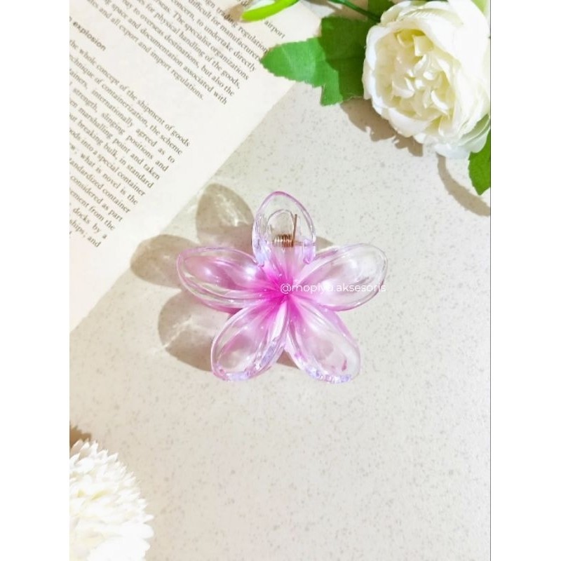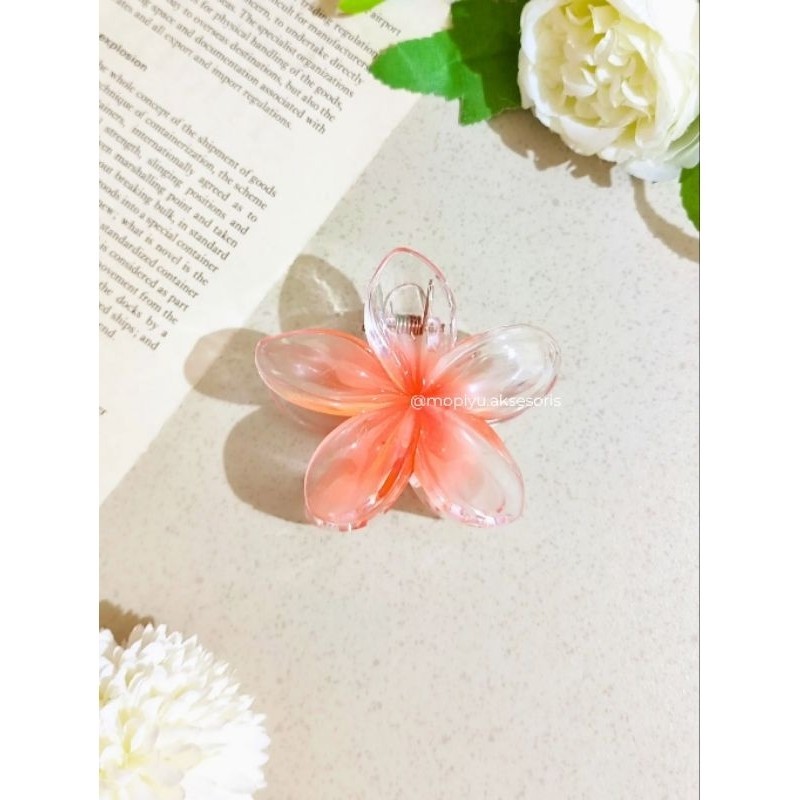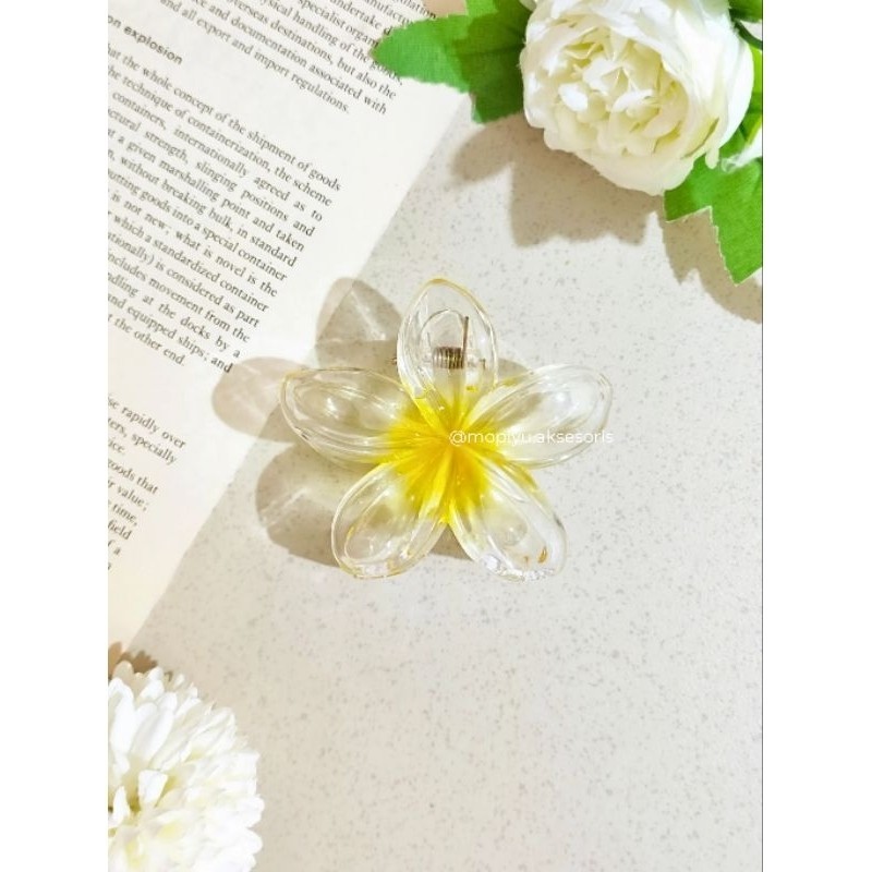 Jepit Rambut Viral Jedai Bunga Kamboja Glossy Bening Ukuran 8 Cm Aksesoris Fashion