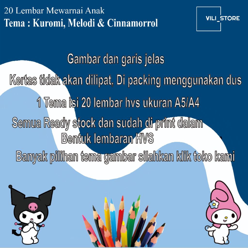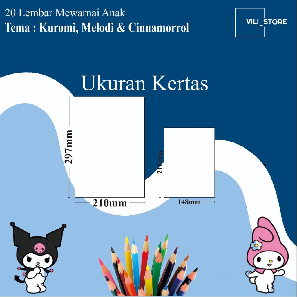 20 Lembar kertas mewarnai tema Kuromi. melodi dan cinnamorrol untuk anak paud TK dan SD