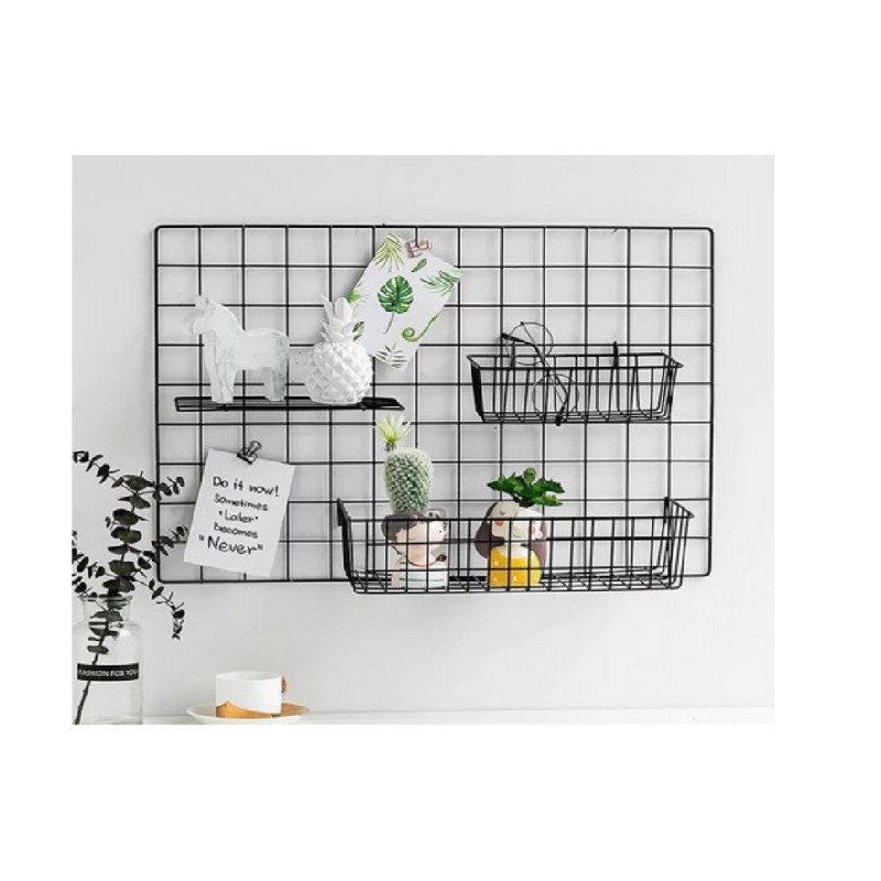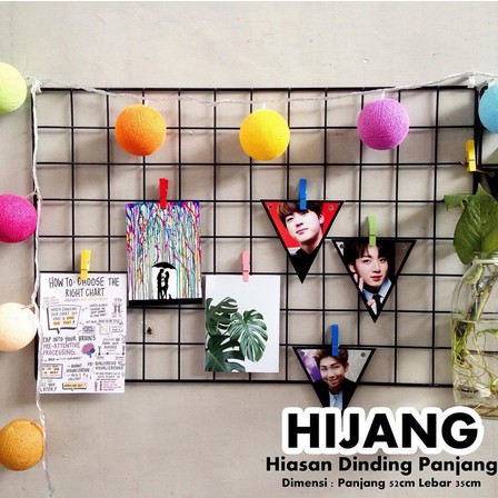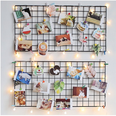 HIJANG 52x35 Hiasan Dinding Wall Grid pajangan foto black grid wire mesh notes Dekorasi Dinding