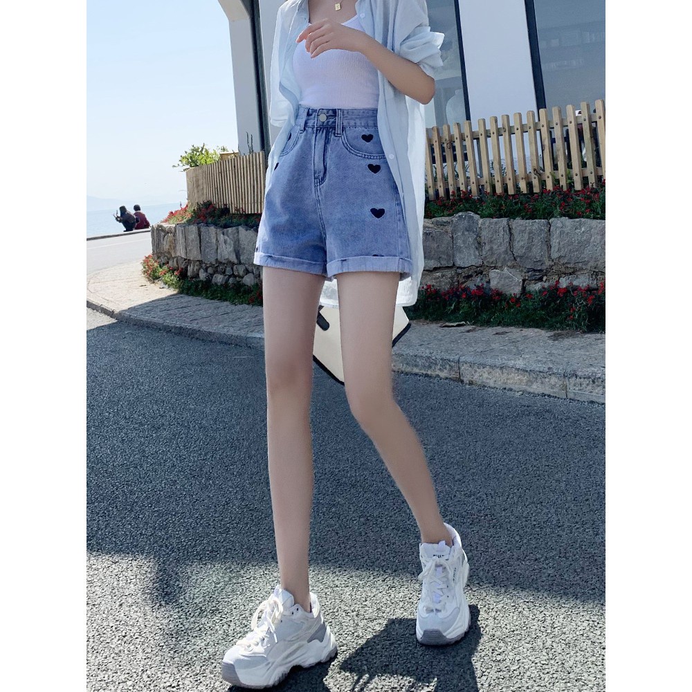 Short Pants High waist Hot Pants Celana Pendek Jeans Wanita Korea Style Motif Bordir Love