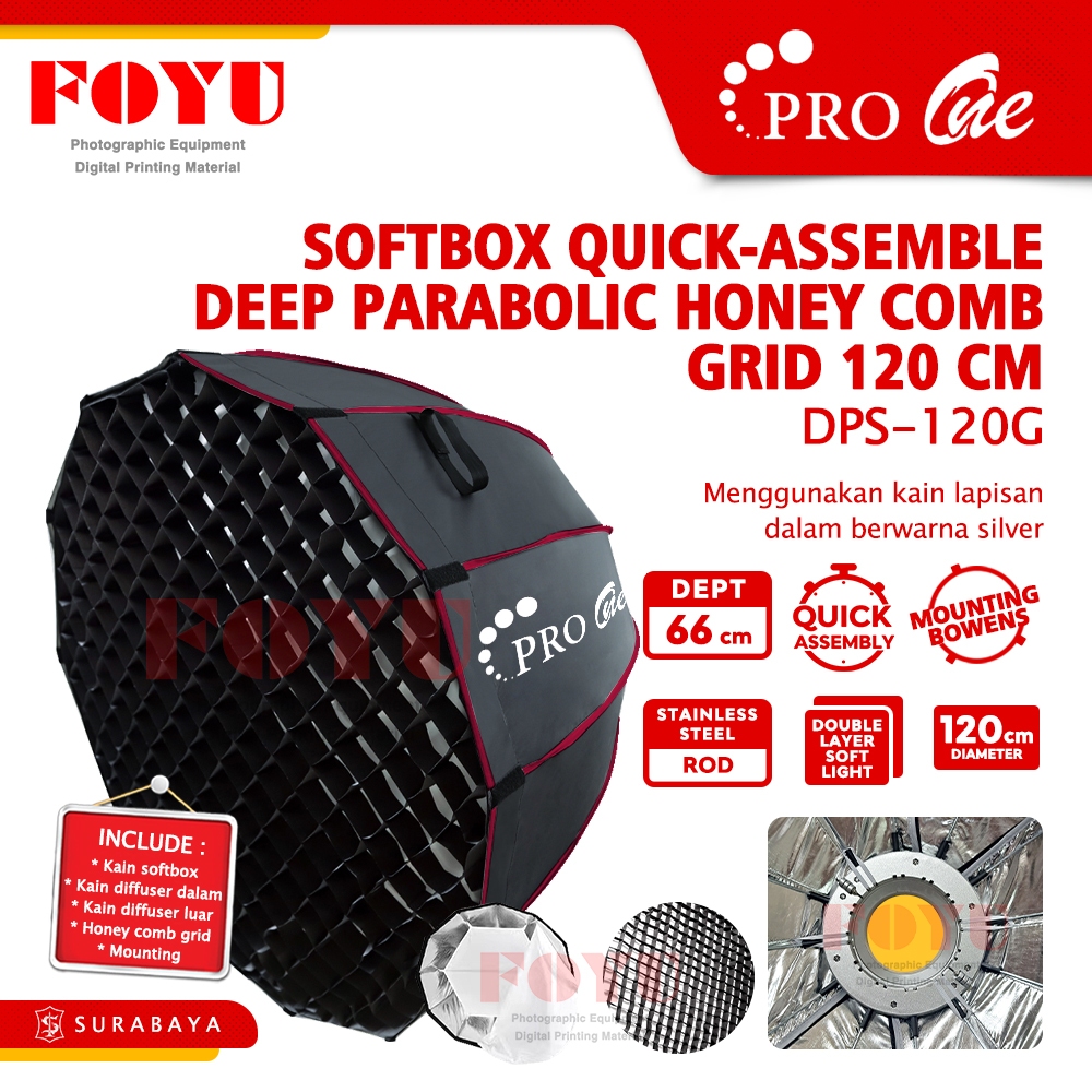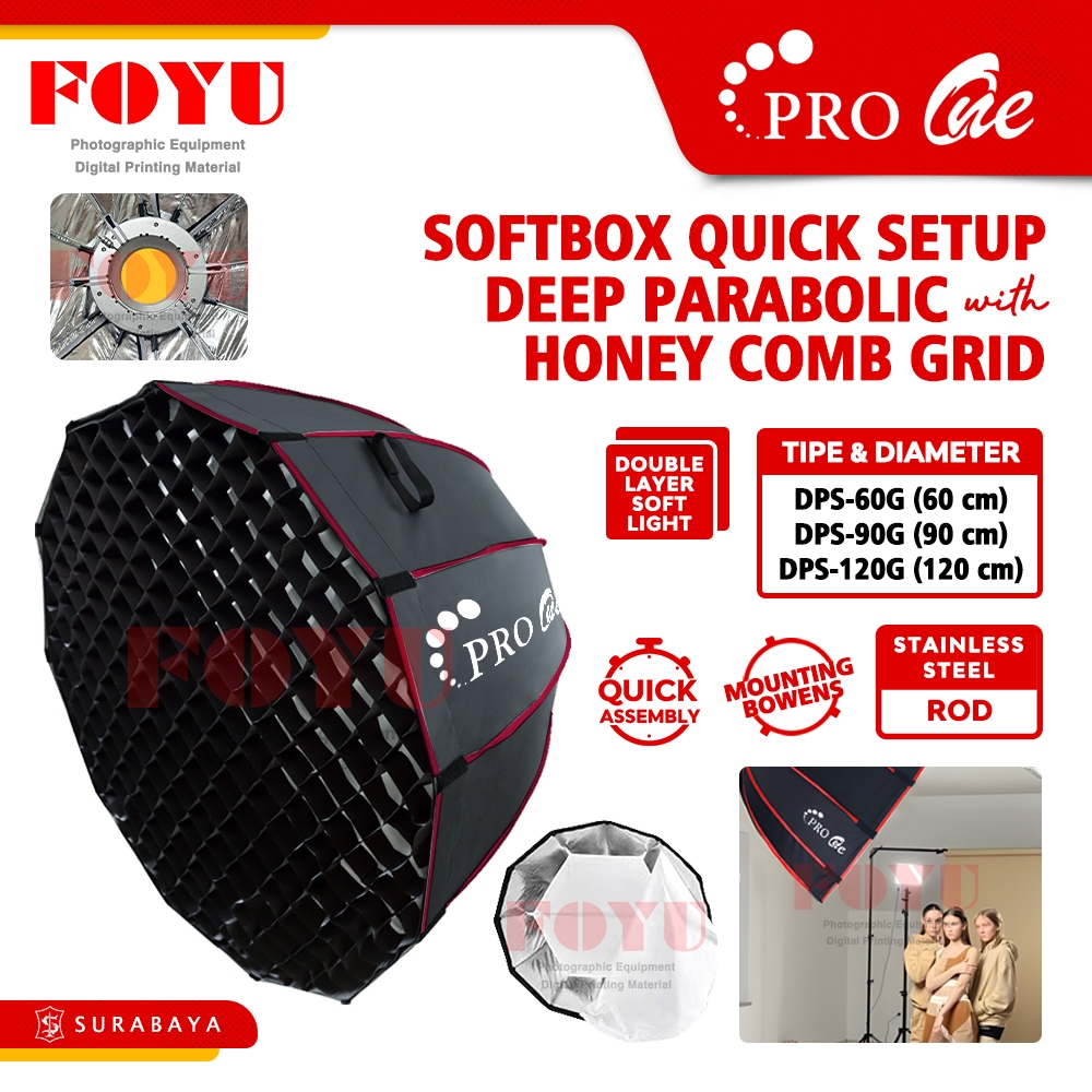 Pro One Softbox Deep Parabolic Honey Comb 60 90 120 cm Honeycomb Grid Studio Flash Light Mount Bowens DPS-60G DPS-90G DPS-120G