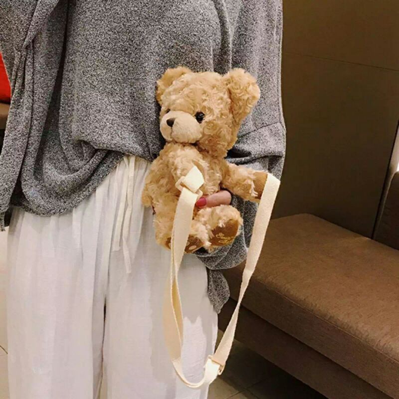 DS99 Tas selempang bulu beruang merangkul tas slempang wanita tedybear tas hp slimbang gemoy ala korea termurah bisa cod harga grosir
