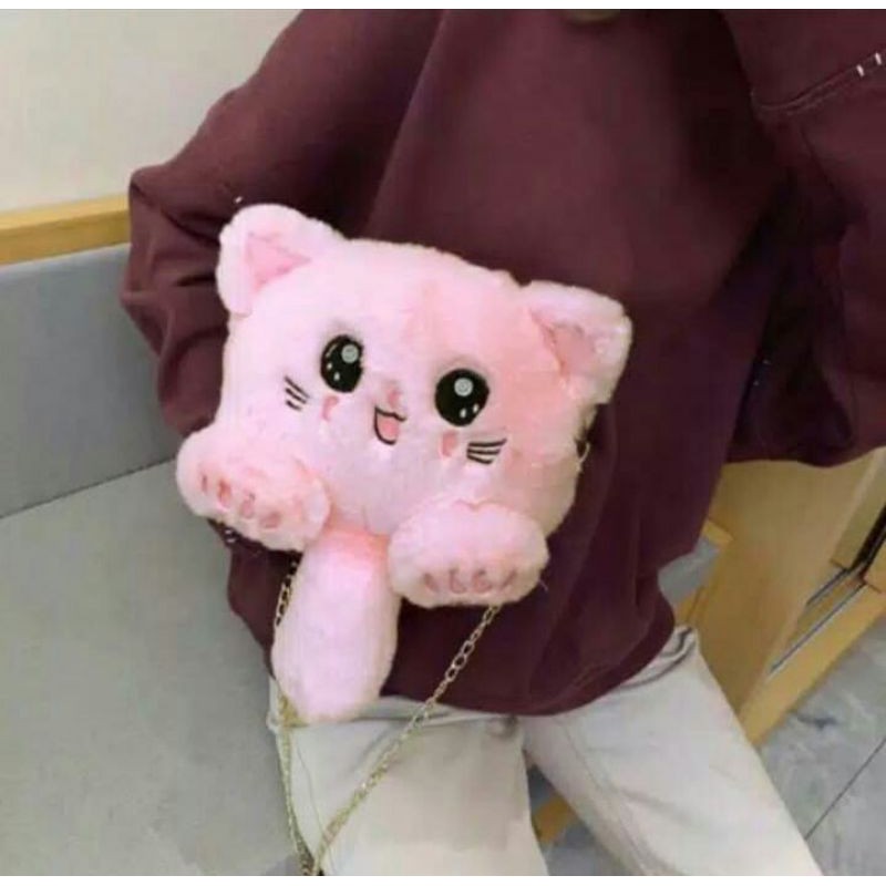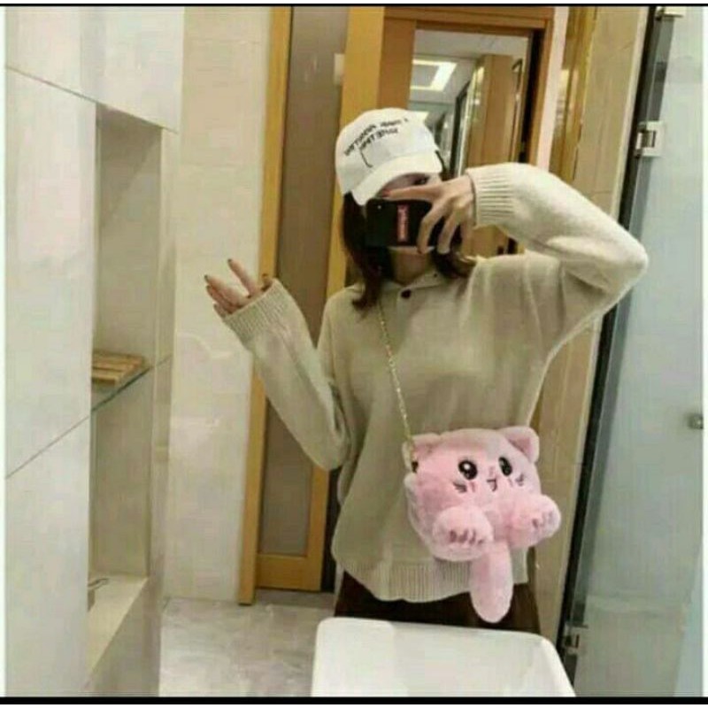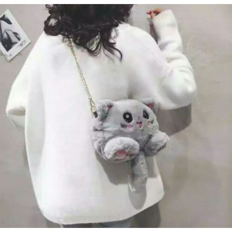 DS99 Tas Selempang bulu model Kucing bulu korean style original termurah tas slempang kucing import