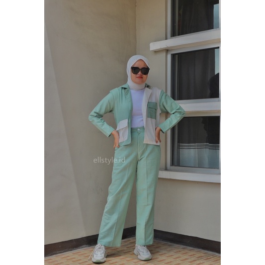 AUDZY ONE SET OUTER PANTS LINEN ALL SIZE [ REALPICT ] ellstyle.id