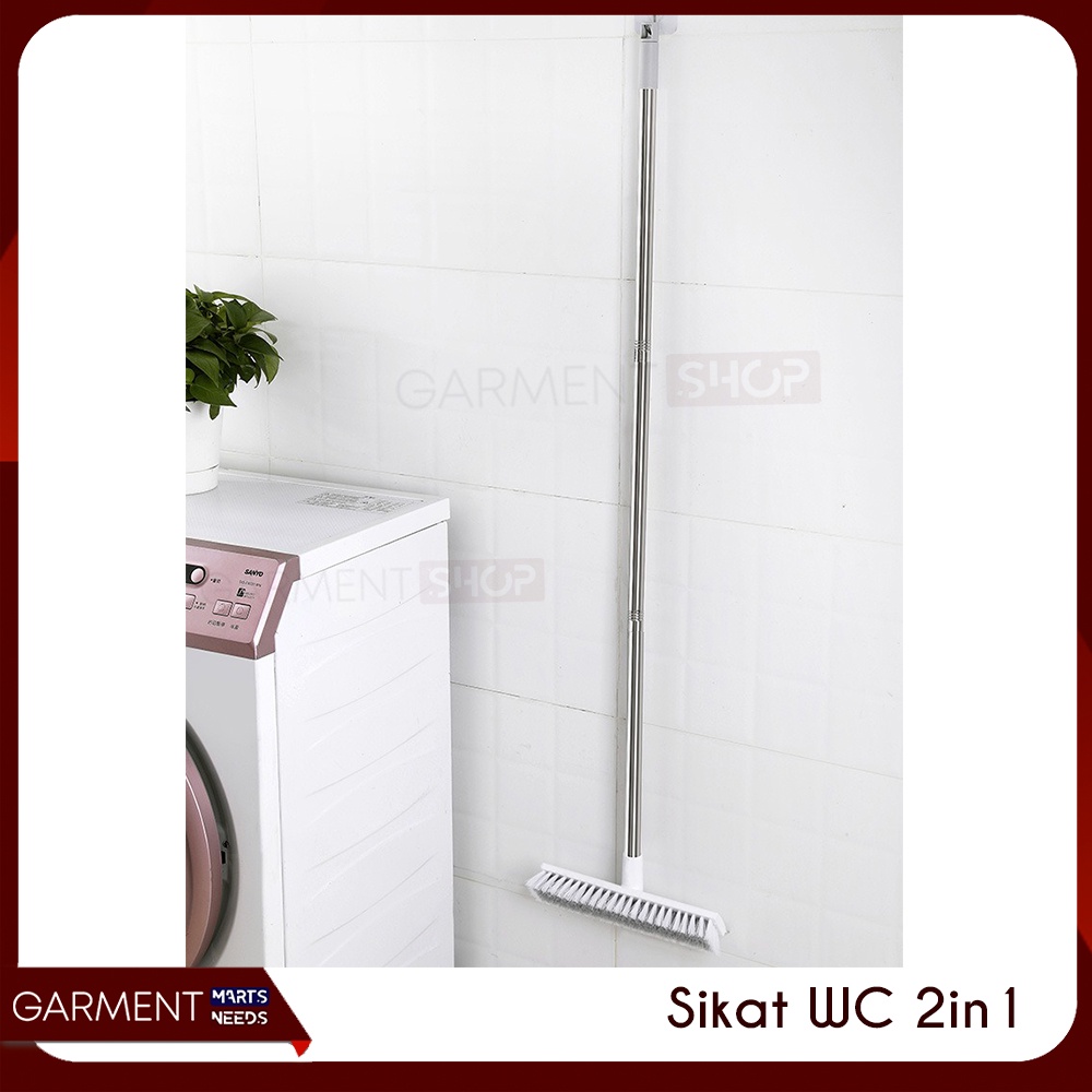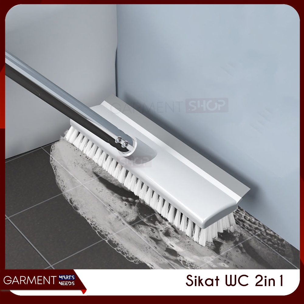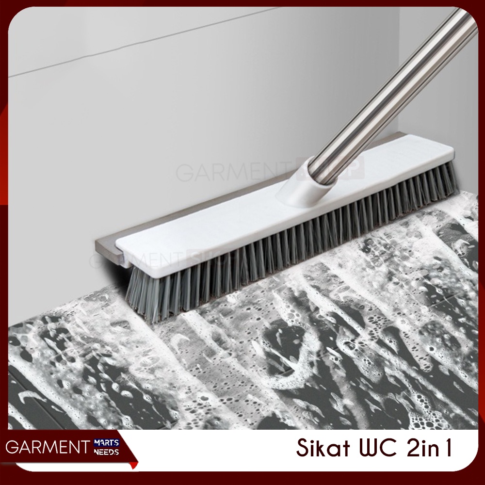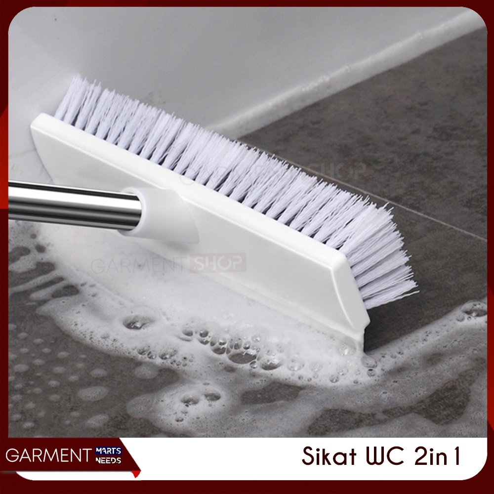 Sikat Lantai Kamar Mandi Pembersih Dinding WC Wiper Dorong Serokan Air Gagang Panjang 2 In 1