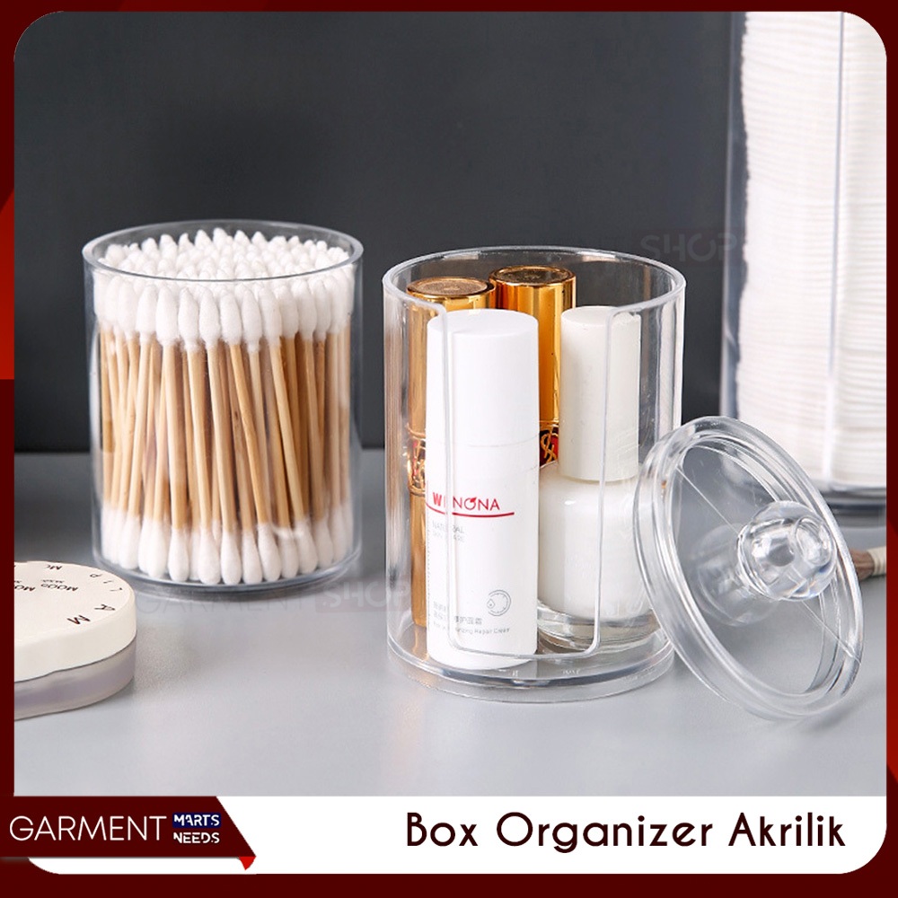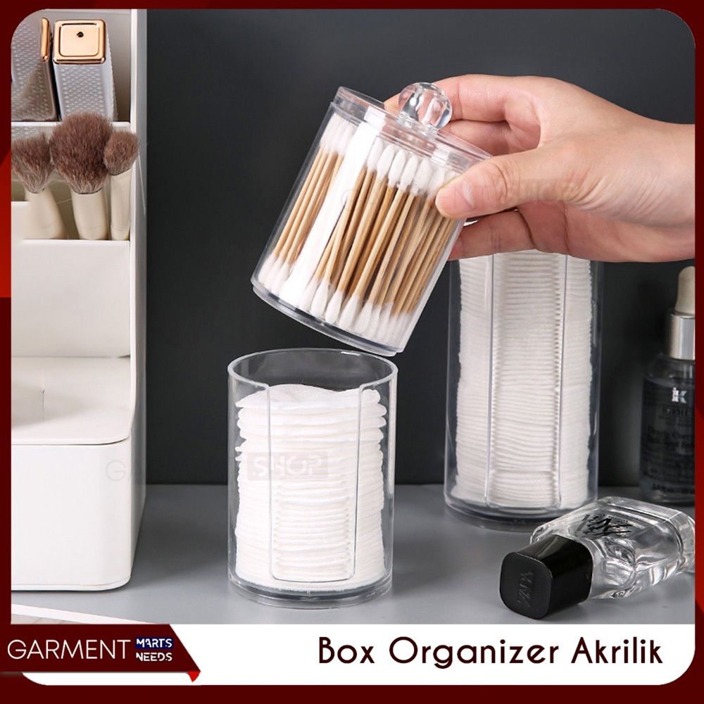 Tempat Kapas Akrilik Bundar Tutup Transaparan Penyimpanan Cotton Bud Box Organizer Skincare