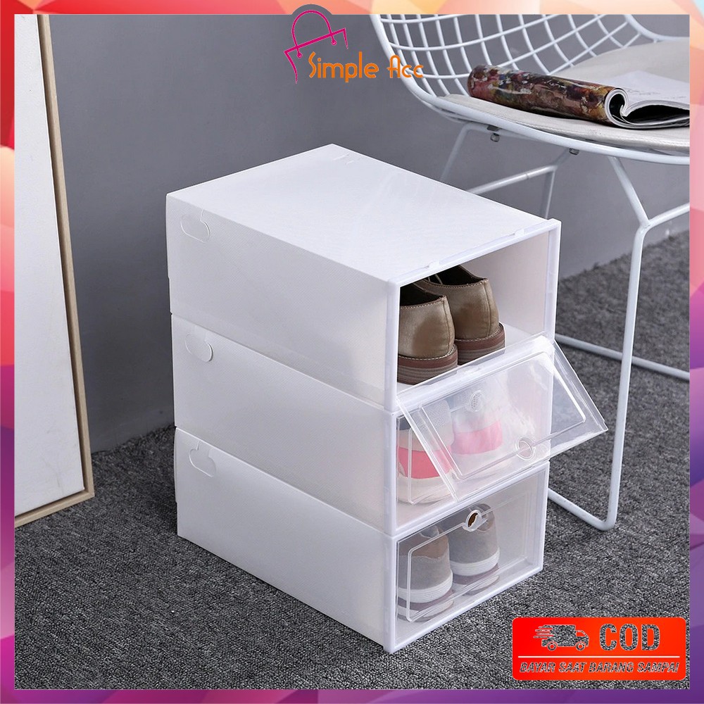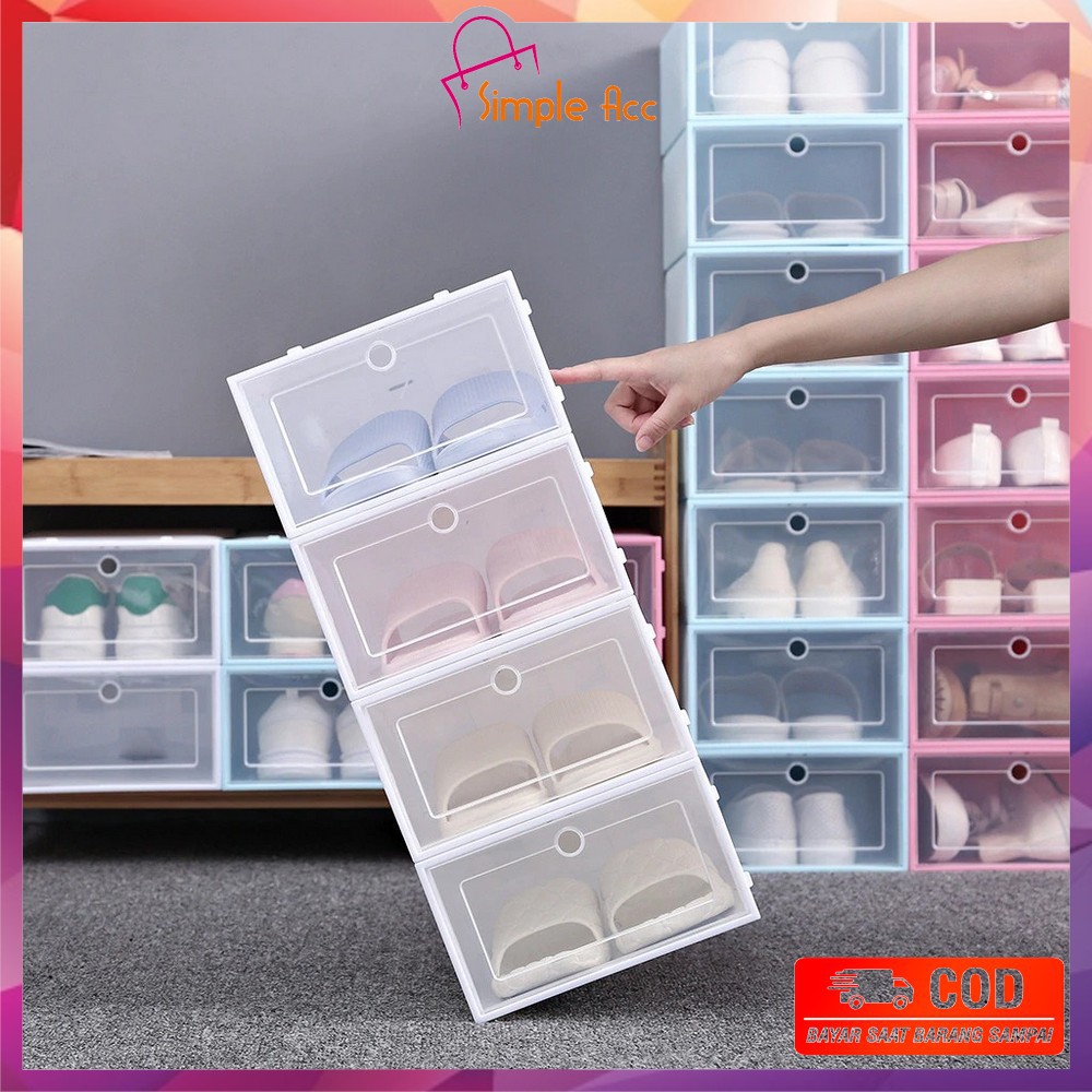 ~COD~ DO-C158 Kotak Sepatu Lipat Transparan Tebal Shoes Storage Box Organizer Rak Sepatu Plastik