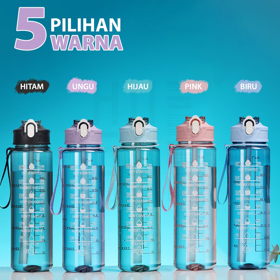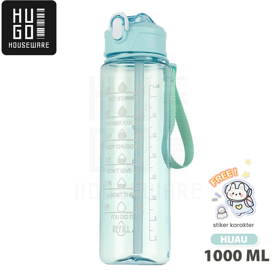 Produk Terbaik HUGO Botol Minum 1 Liter Bening Botol Air Anak Sedotan Anti Bocor Premium BPA FREE