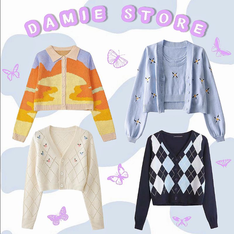 ☆DAMIE☆ CARDIGAN Rajut Wanita Korea Sweater Wanita Murah Vest Rose Outer knit cardi