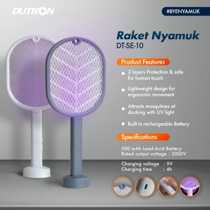 Dutron Raket Nyamuk Listrik Cas Lampu UV - SE10