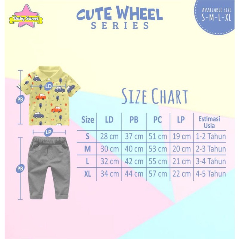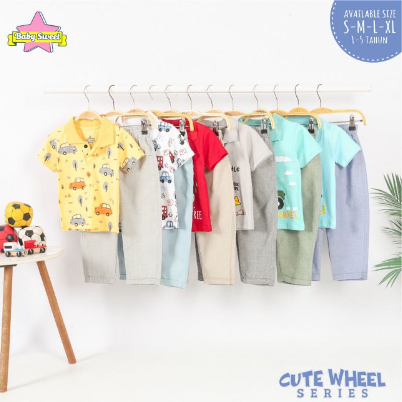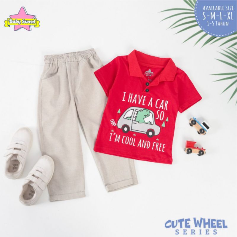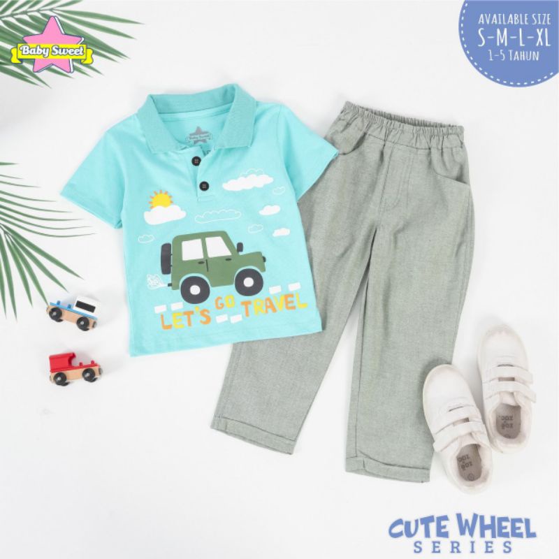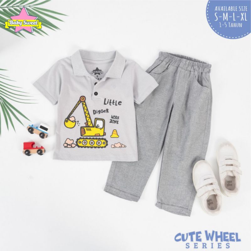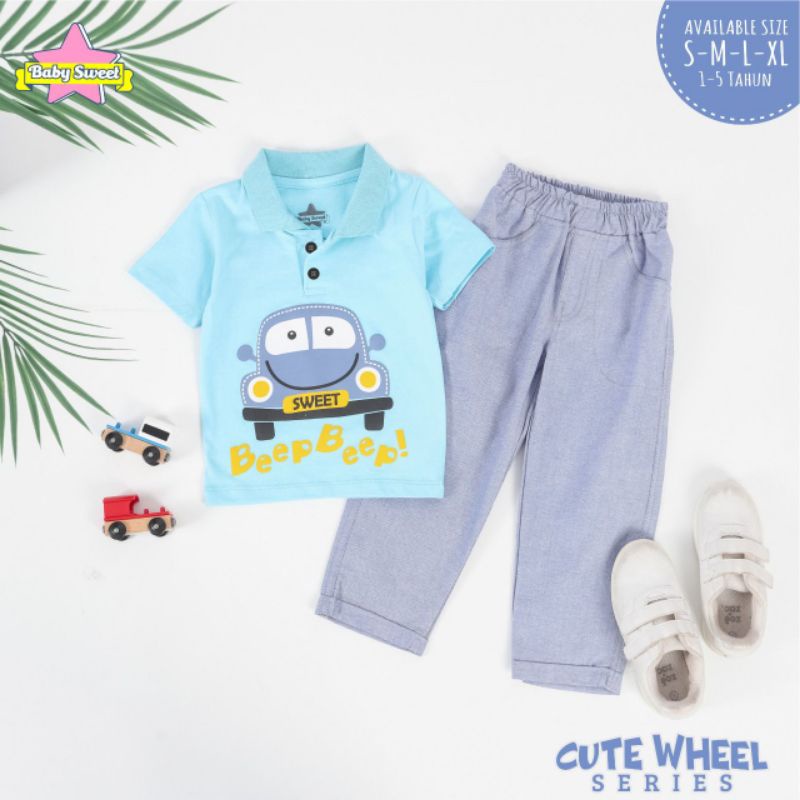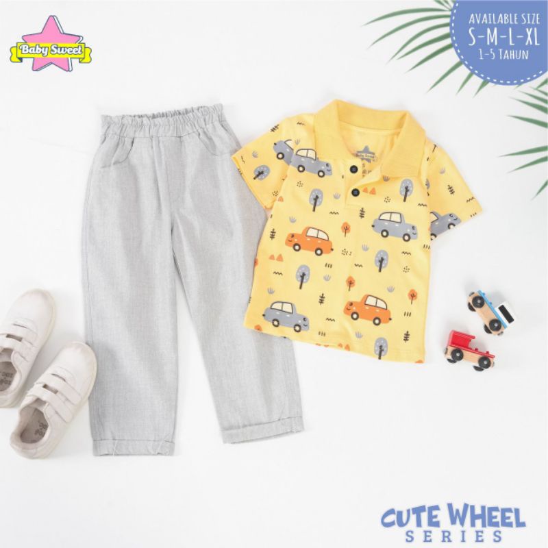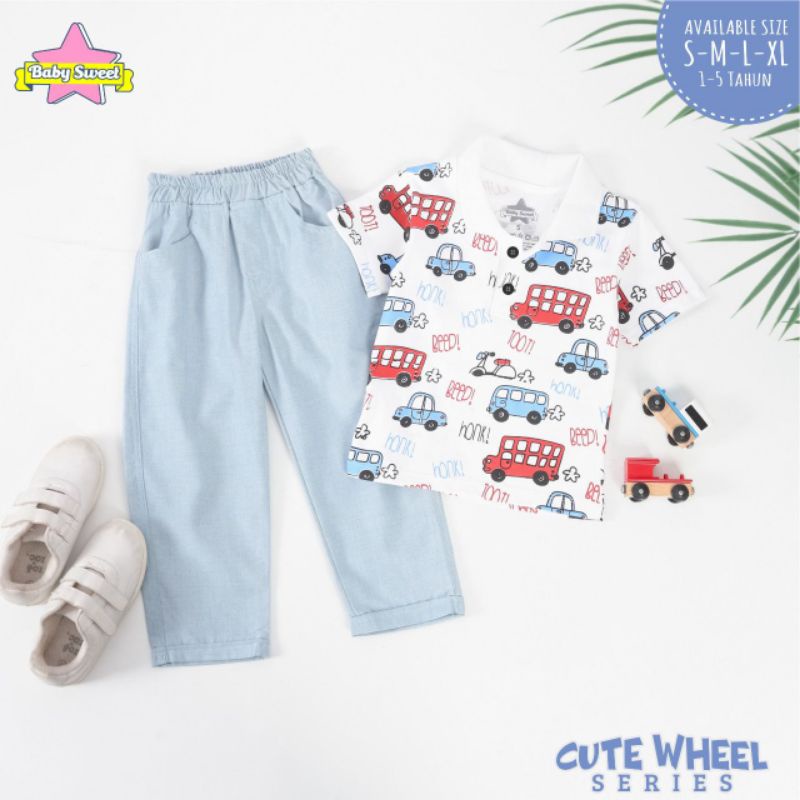 S-XL (Est. 1-5T) Set Cute Wheel Series by Baby Sweet / Setelan Kemeja Anak Cowok