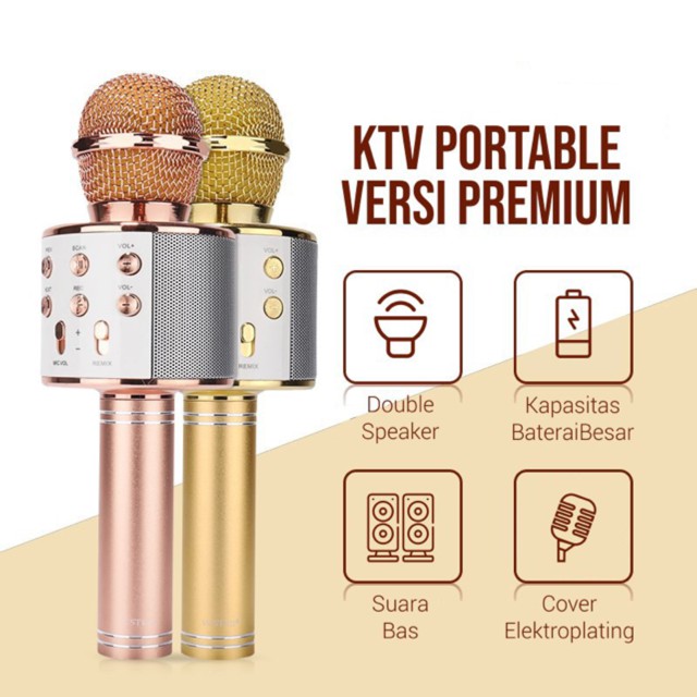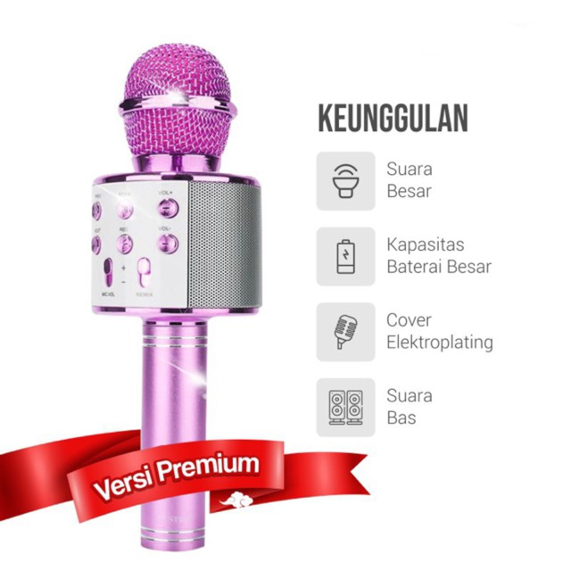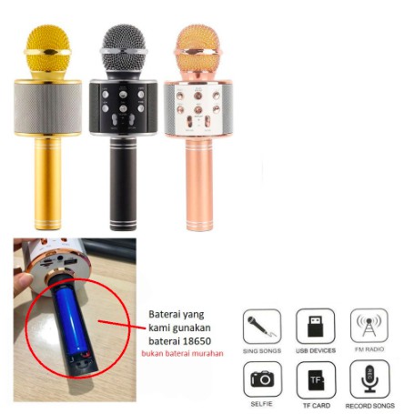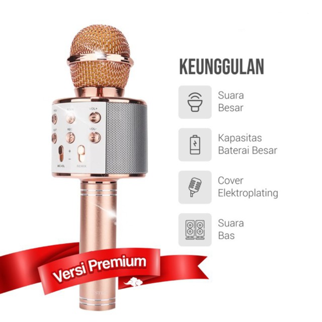 Mic Bluetooth Wster Smule Wireless Karaoke Portable WS 858 / Microphone Speaker Karoke WS858