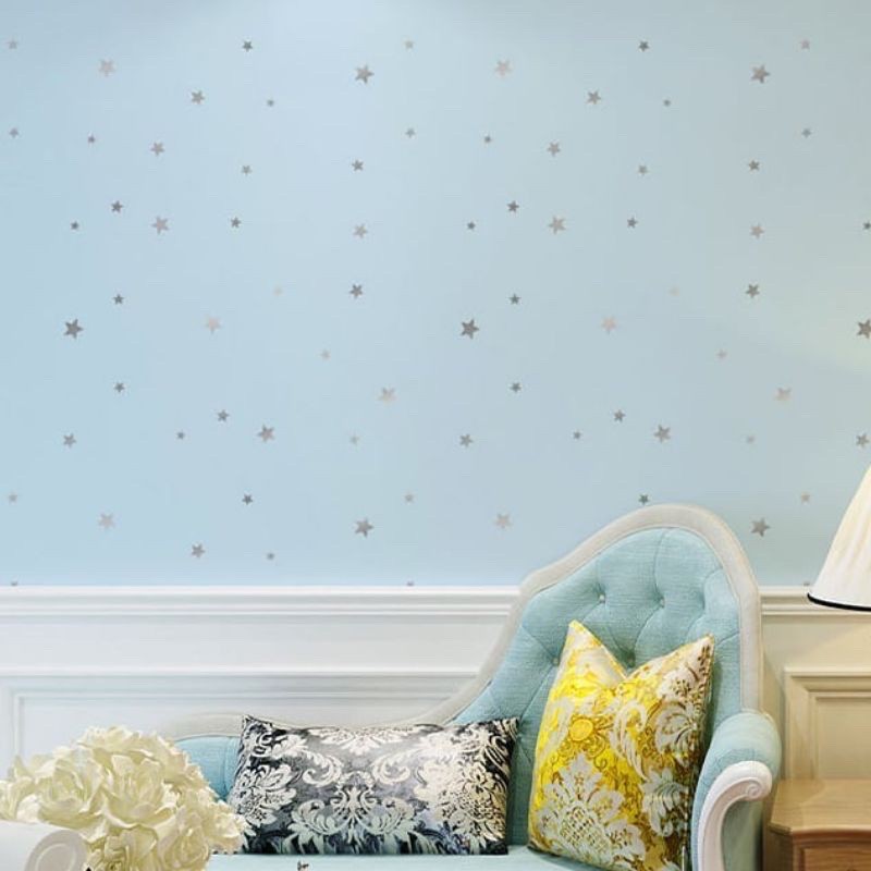 WALLPAPER DINDING Motif BINTANG STAR BIRU GREY HITAM PINK PUTIH