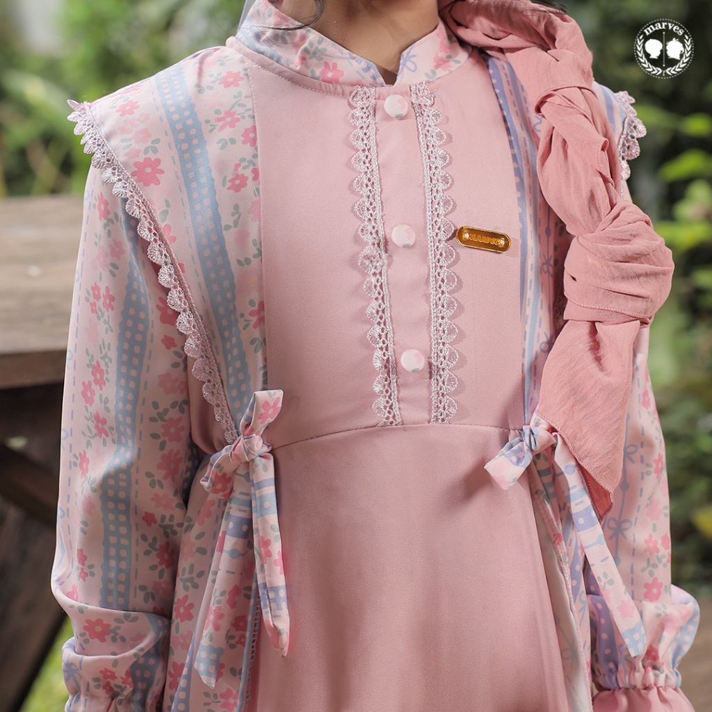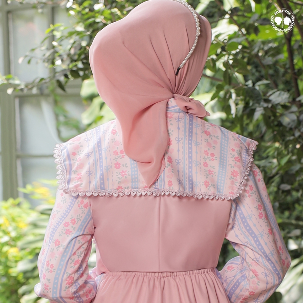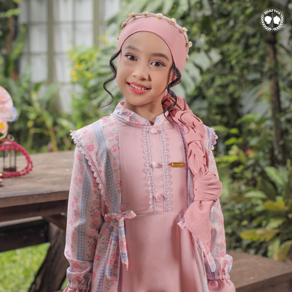 MARVES Kanaya Gamis Baju Muslim Anak Perempuan Bahan Crinkle Motif Bunga Usia 2 hingga 14 Tahun