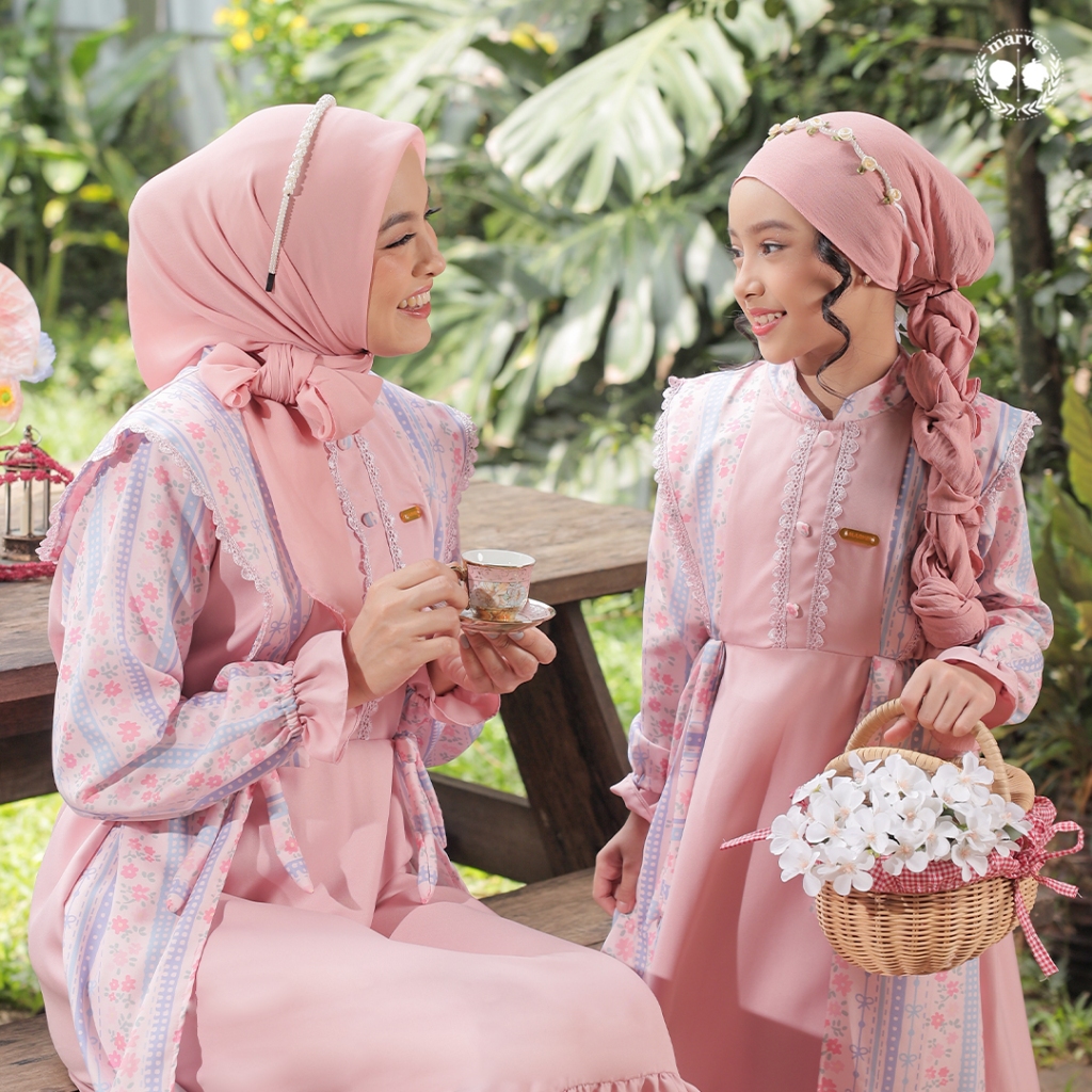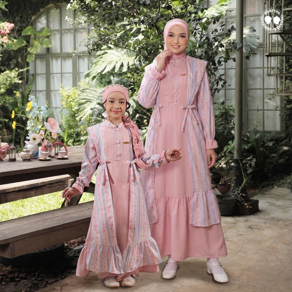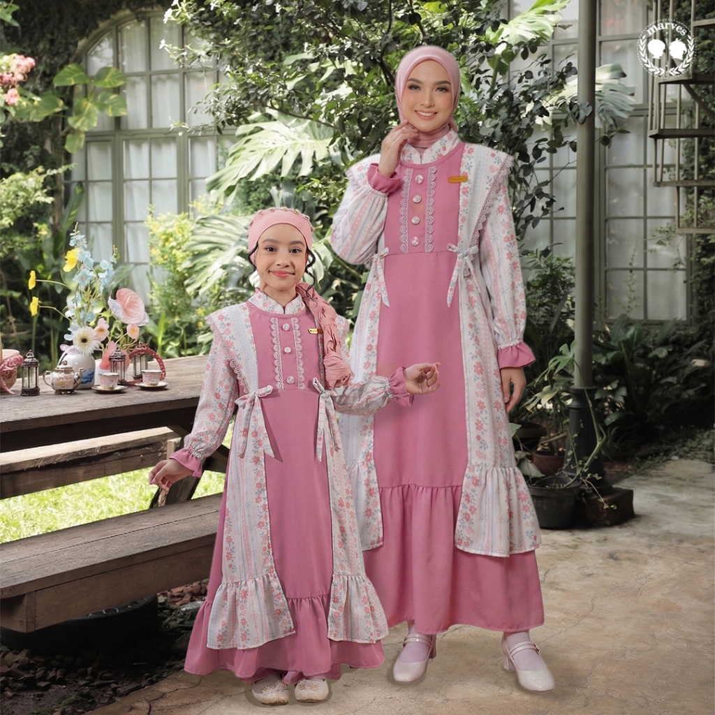 MARVES Kanaya Gamis Baju Muslim Anak Perempuan Bahan Crinkle Motif Bunga Usia 2 hingga 14 Tahun