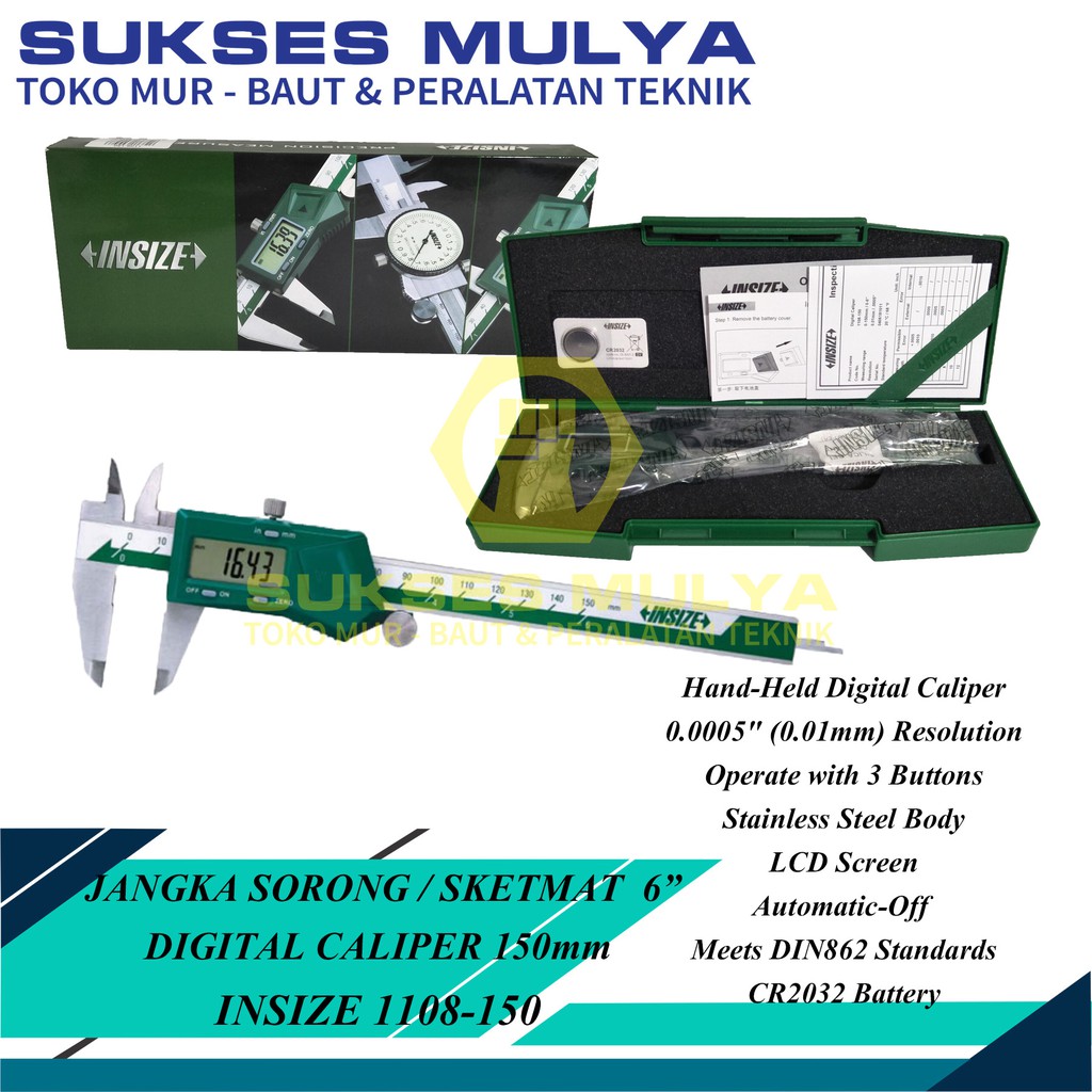 INSIZE 1108-150 Sigmat Digital 6 Inch 150 mm - Jangka Sorong Vernier Caliper