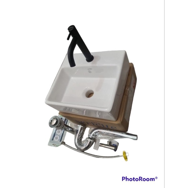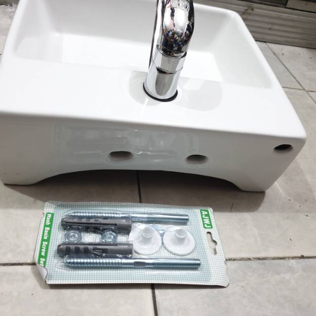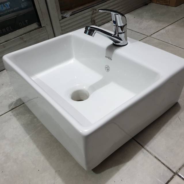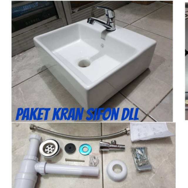Wastafel keramik kotak JAYCO 2027 komplit alat