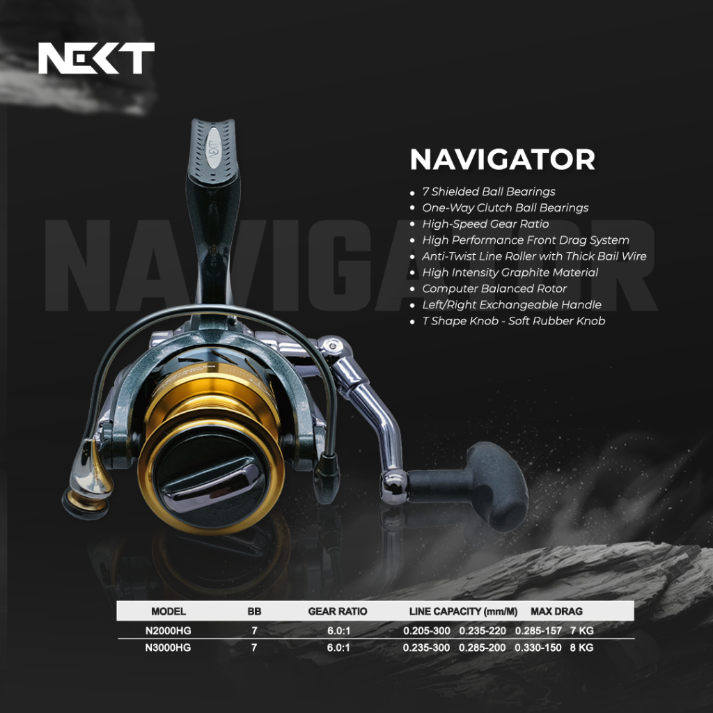 Reel Pancing NEXT Navigator Spinning – High-Speed Gear 7 Ball Bearing | Max Drag 7–8 KG