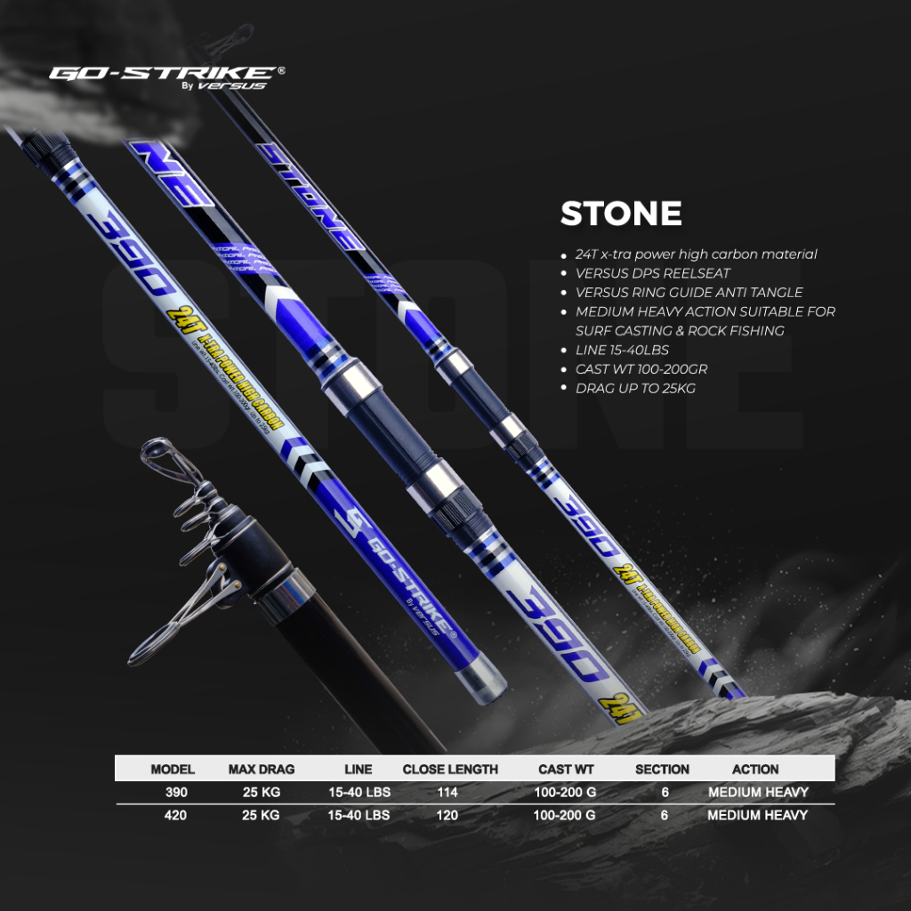 GOSTRIKE STONE – Joran Pasiran Surf Casting 24T X-Power | Medium Heavy 15–40lbs Max Drag 25kg | Ring Anti Tangle High Carbon Material
